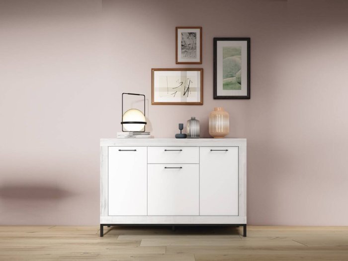 Si estás en busca de un aparador que combine diseño, funcionalidad y capacidad de almacenaje, el modelo Dakota es justo lo que necesitas. Con un tamaño ideal y 3 puertas con cajón, este mueble ofrece una gran capacidad para organizar tus objetos y mantener tu salón ordenado.