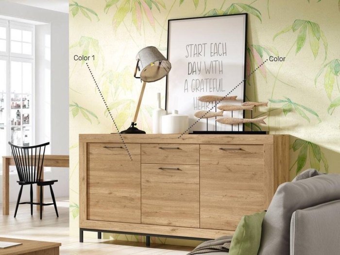 Si estás en busca de un aparador que combine diseño, funcionalidad y capacidad de almacenaje, el modelo Dakota es justo lo que necesitas. Con un tamaño ideal y 3 puertas con cajón, este mueble ofrece una gran capacidad para organizar tus objetos y mantener tu salón ordenado.