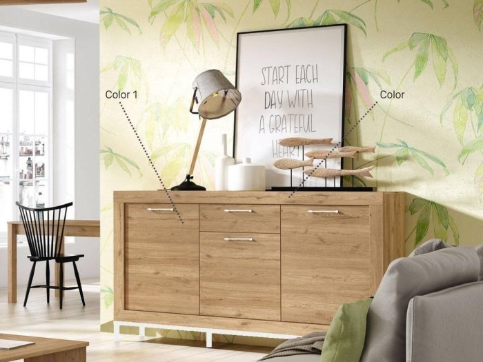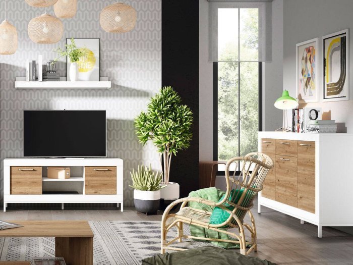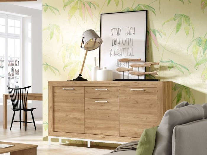 Si estás en busca de un aparador que combine diseño, funcionalidad y capacidad de almacenaje, el modelo Dakota es justo lo que necesitas. Con un tamaño ideal y 3 puertas con cajón, este mueble ofrece una gran capacidad para organizar tus objetos y mantener tu salón ordenado.