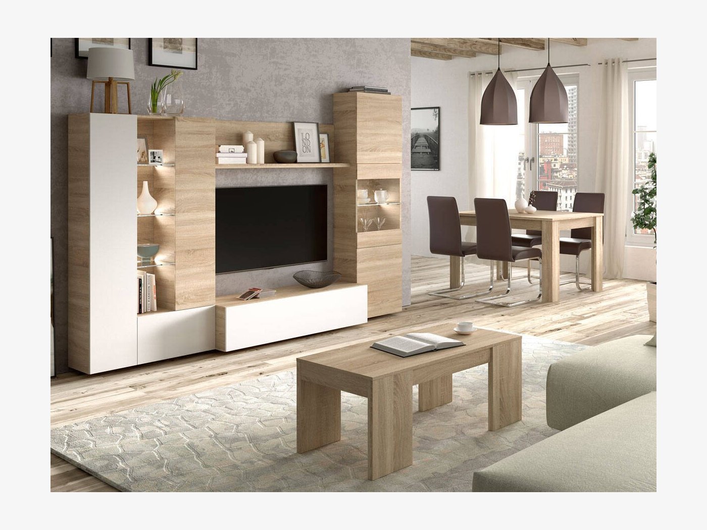 Disponible mesa de comedor extensible Torra y mesa de centro Aba a juego.