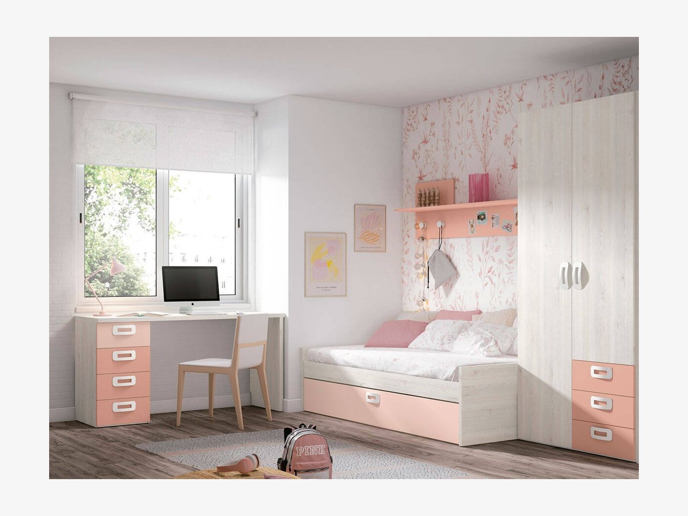 Tablero de melamina de 30 mm. combinado tablero de 16 mm. Interiores de montaje no visibles en color estandard, que puede no coincidir con el color escogido de cama.