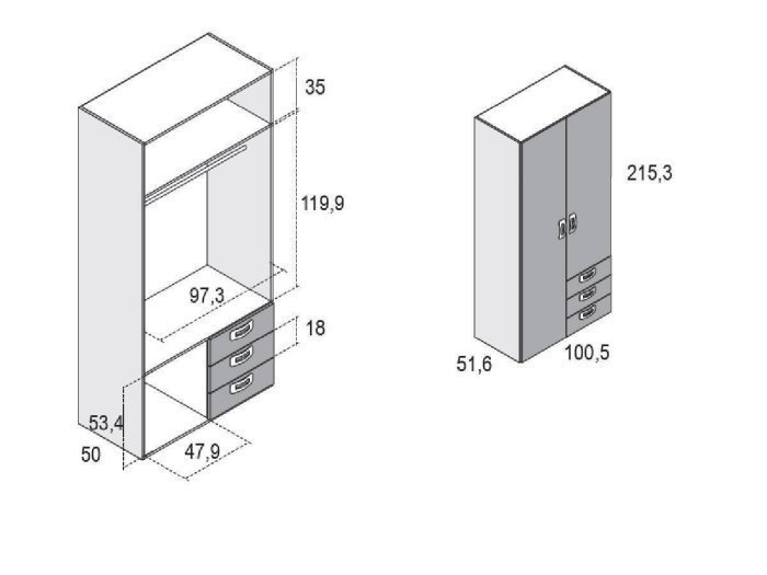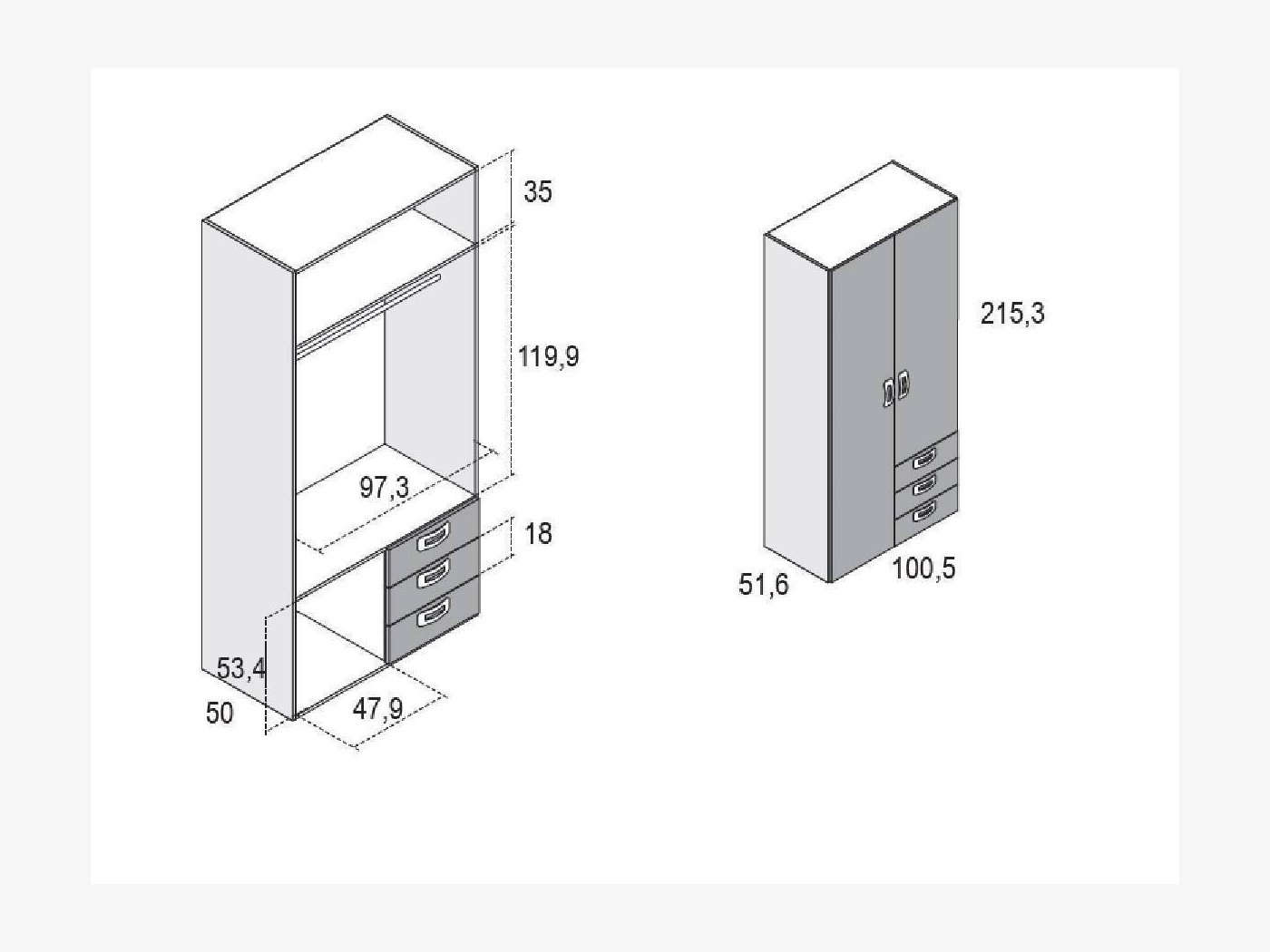 Por defecto, puertas y estructura del armario serán en el mismo color.