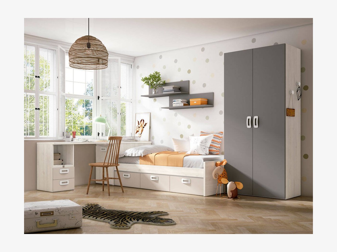 Tablero de melamina de 30 mm. combinado tablero de 16 mm. Interiores de montaje no visibles en color estandard, que puede no coincidir con el color escogido de cama.