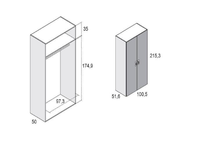 Interior del armario equipado con estante altillo y barra de colgar. Posibilidad de añadir estantes interiores adicionales bajo presupuesto.