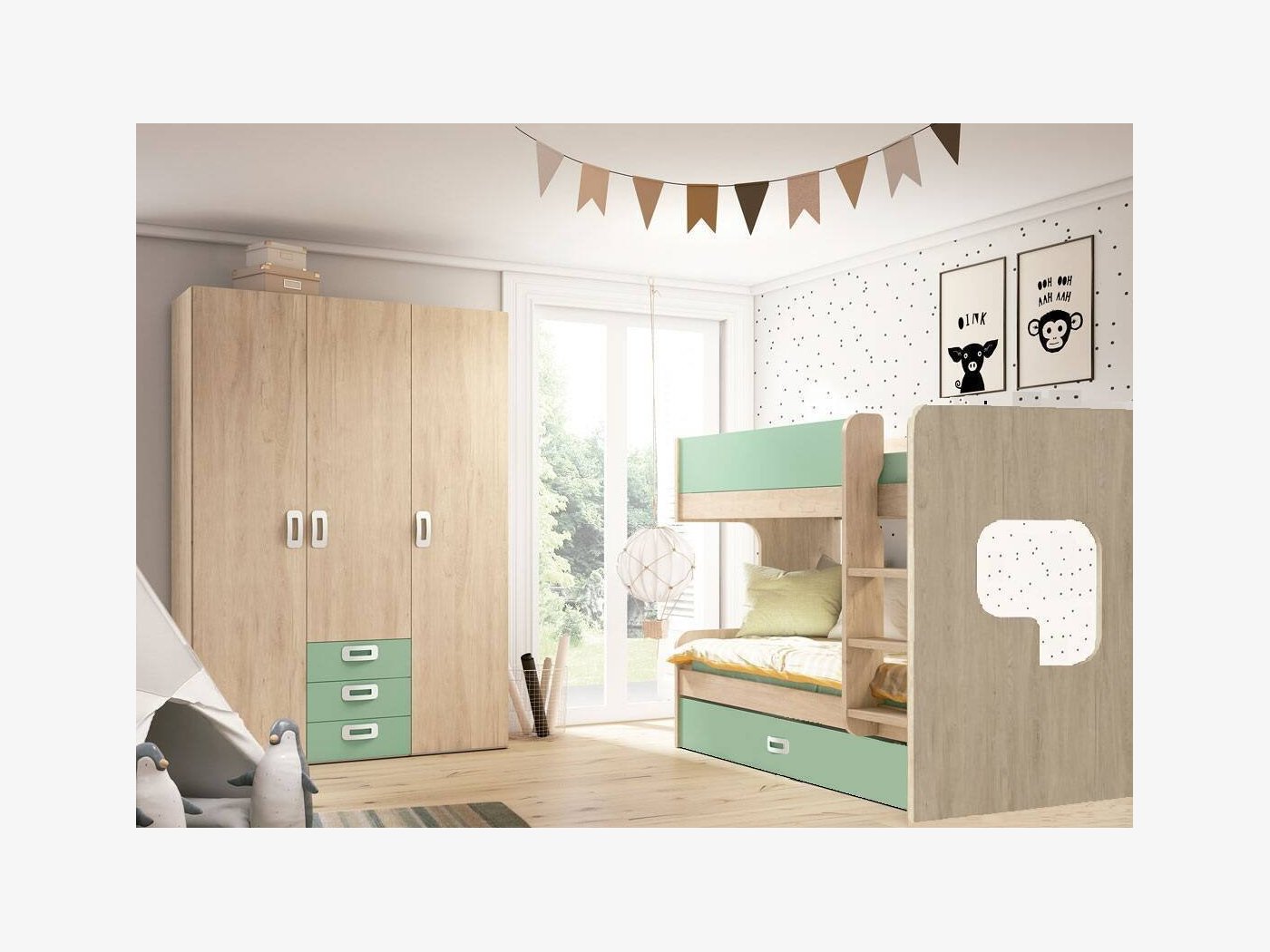 Tablero de melamina de 30 mm. combinado tablero de 16 mm. Interiores de montaje no visibles en color estandard, que puede no coincidir con el color escogido de cama.