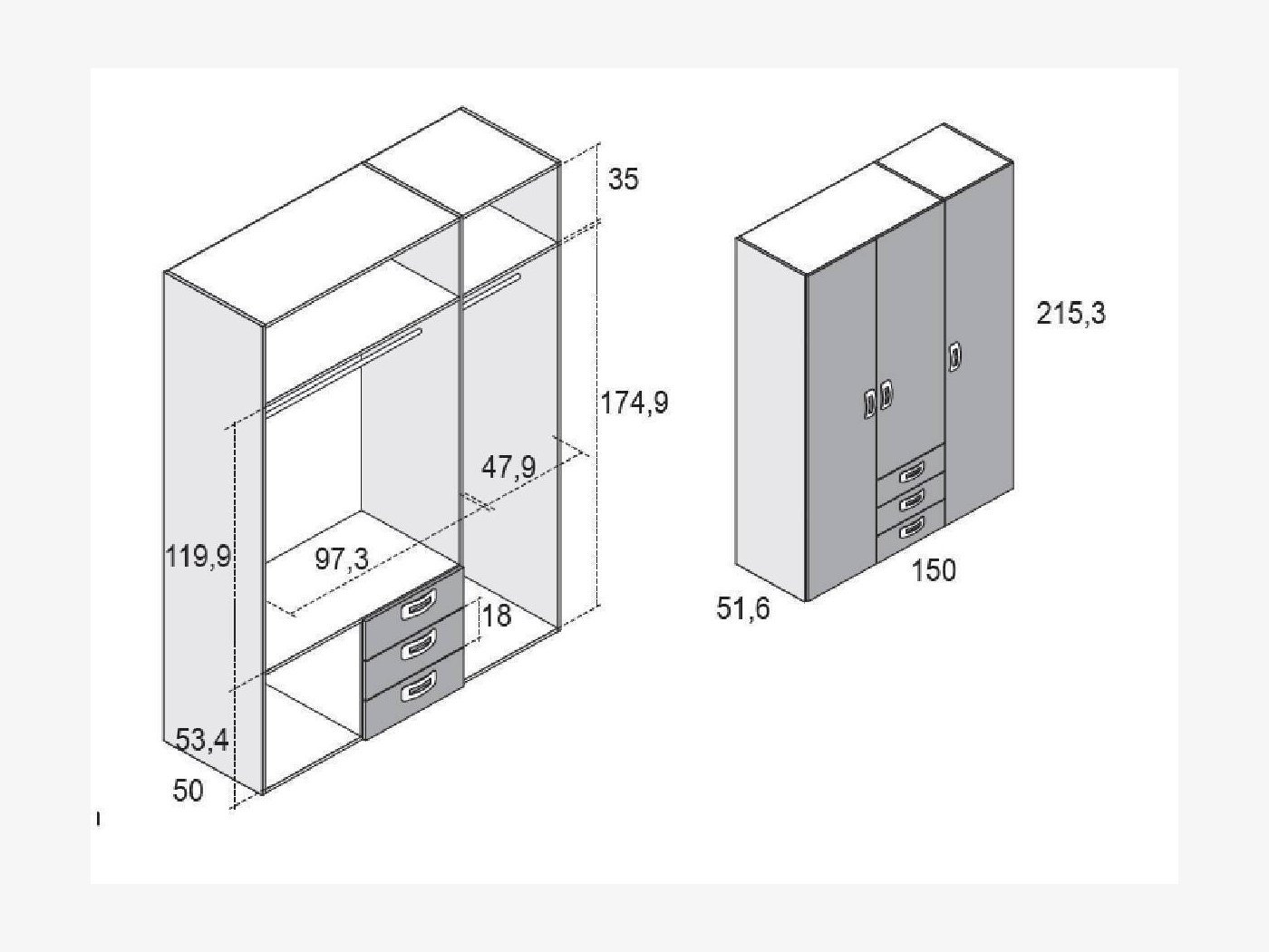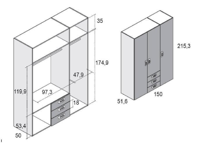 Por defecto, puertas y estructura del armario serán en el mismo color.