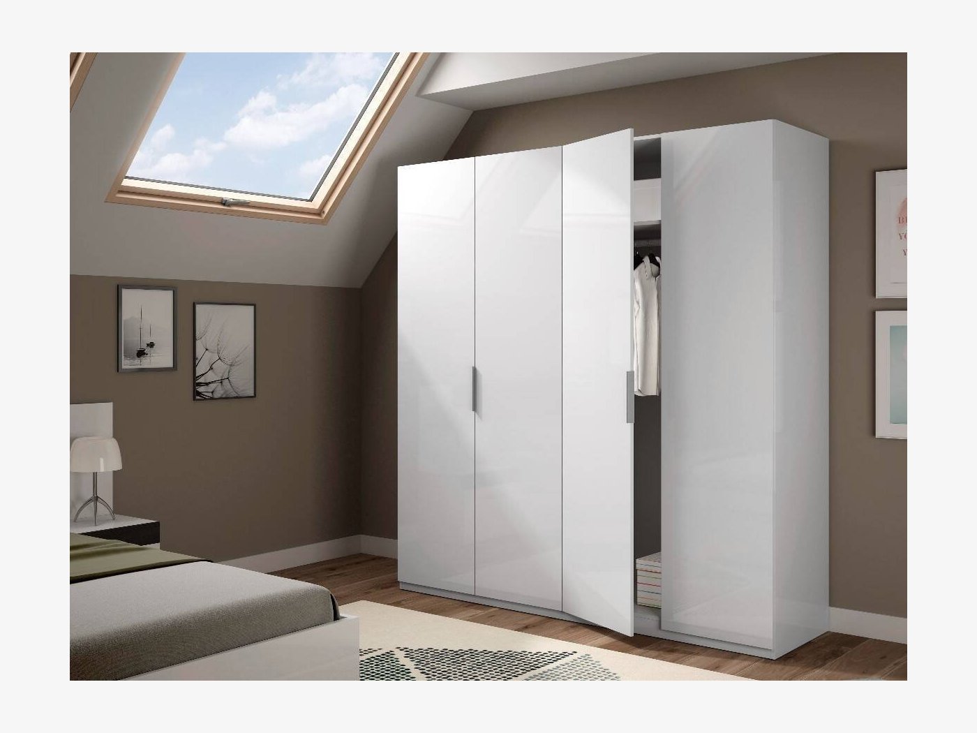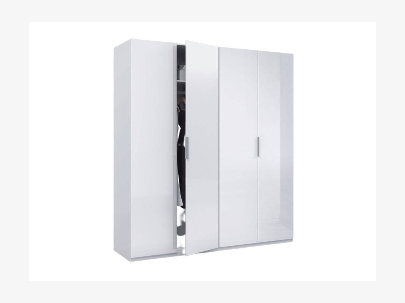 Armario de 4 puertas batientes color blanco con ligero brillo. Un mueble indispensable de gran capacidad para tener en tu dormitorio