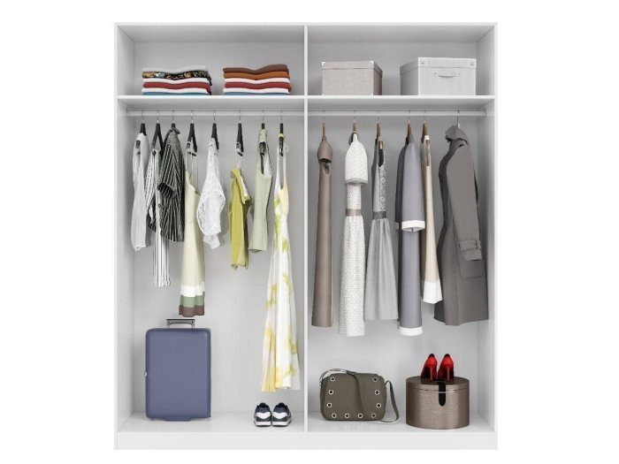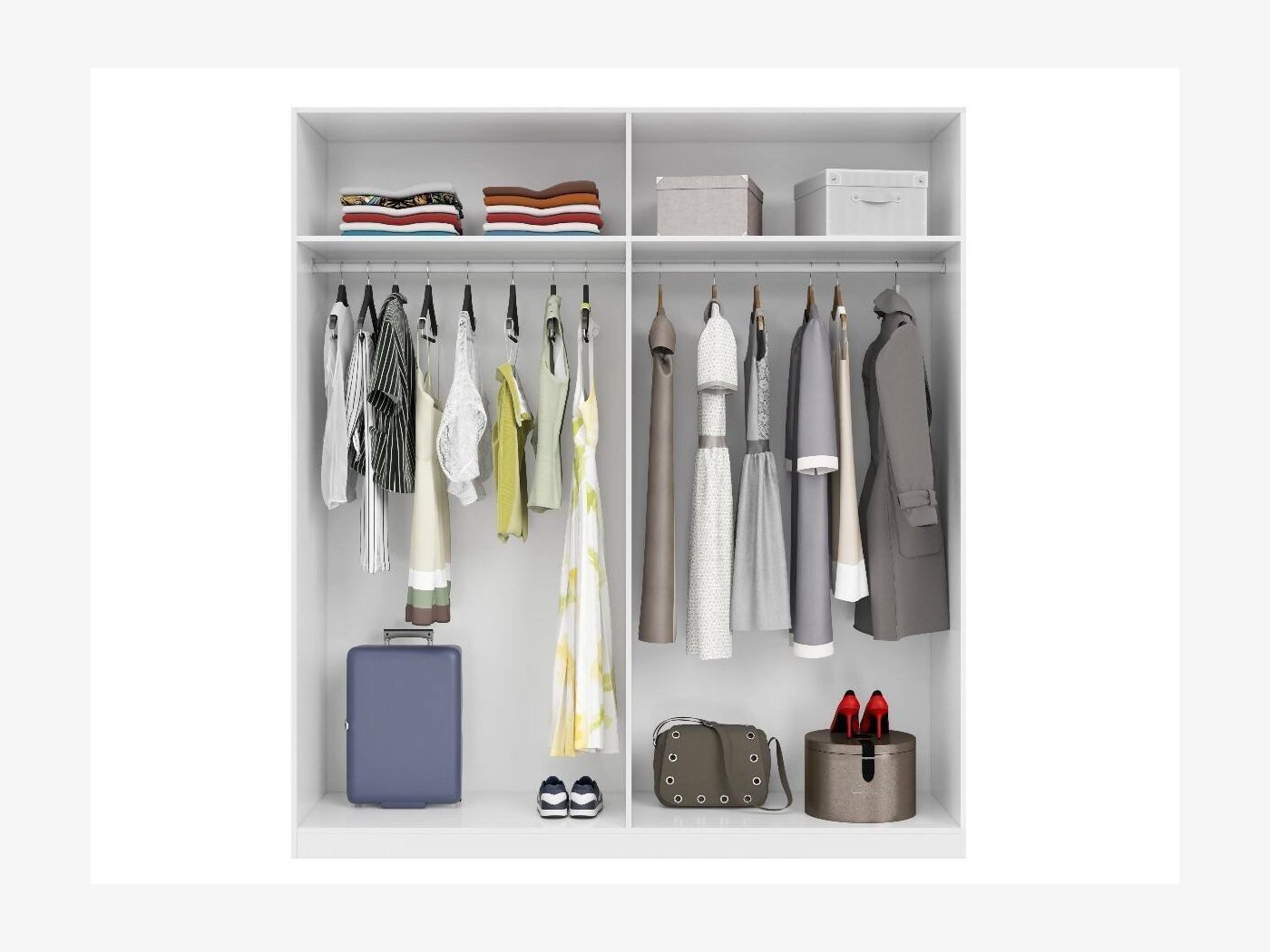 Interior de armario equipado con estante altillo y barra de colgar en cada módulo de 2 puertas.