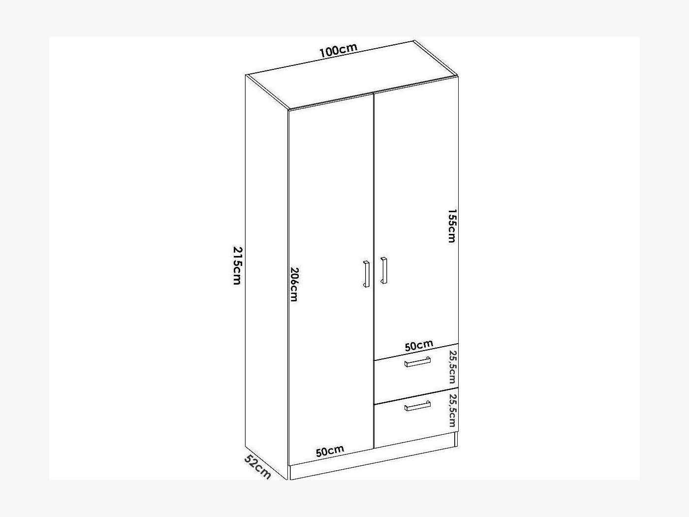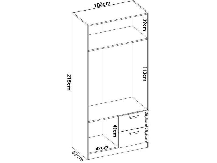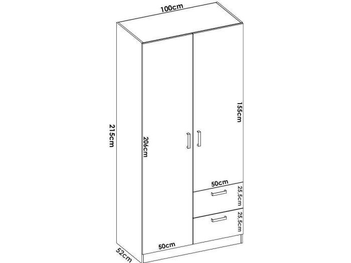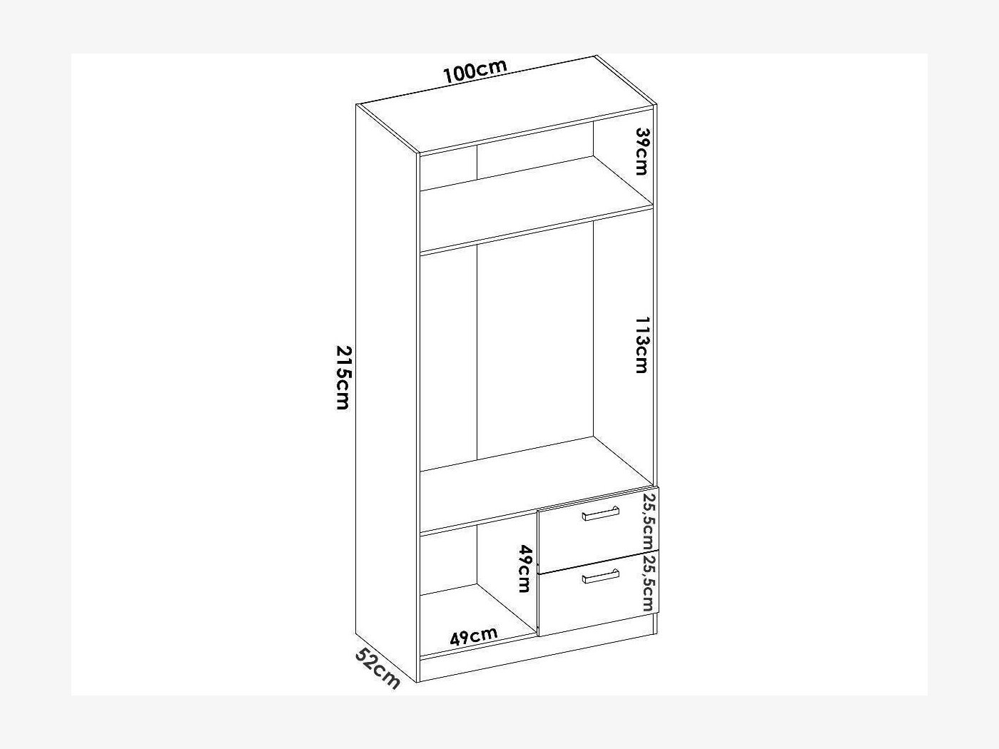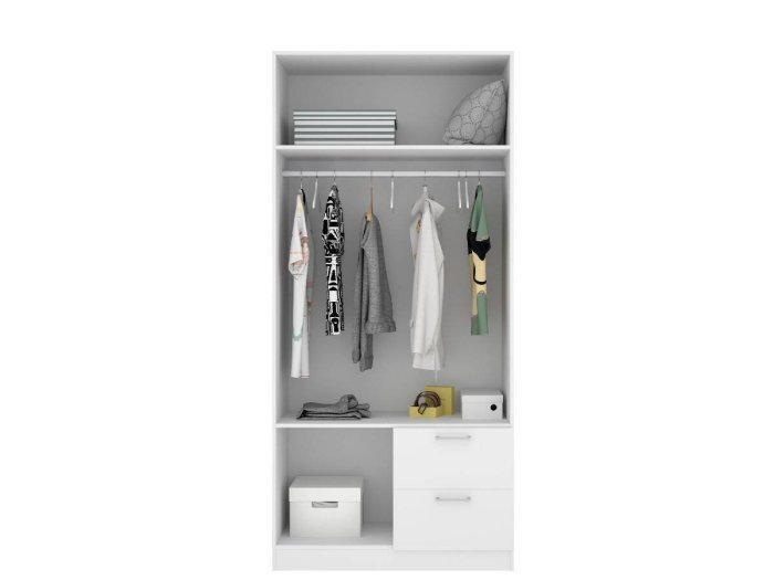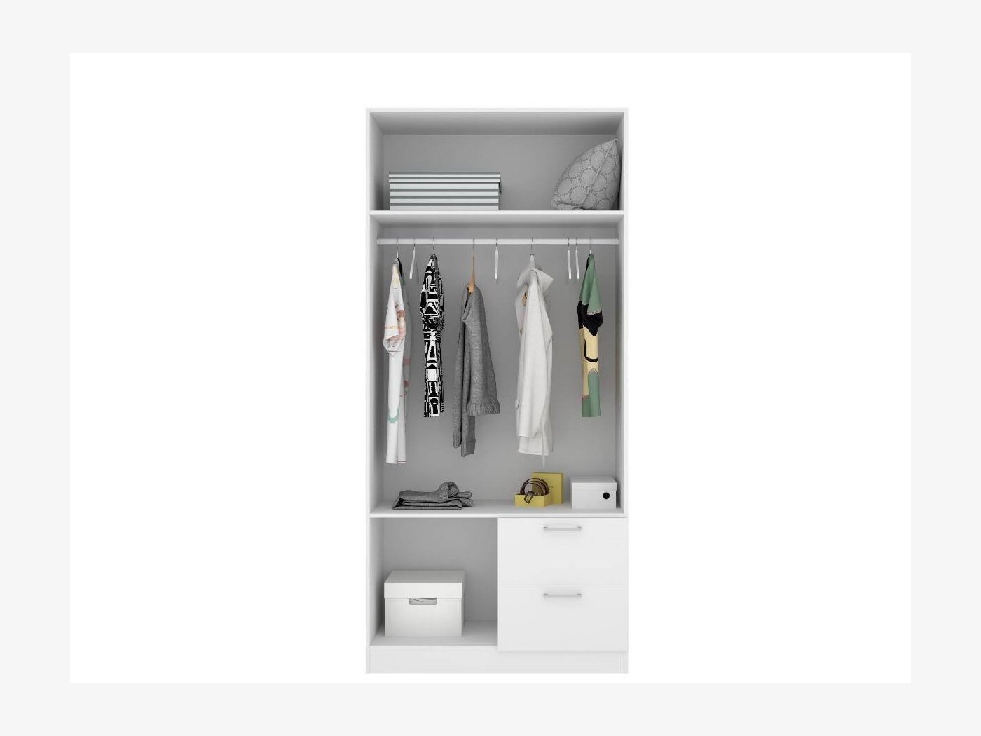 Equipado con estante altillo, estante inferior, barra de colgar y dos amplios cajones