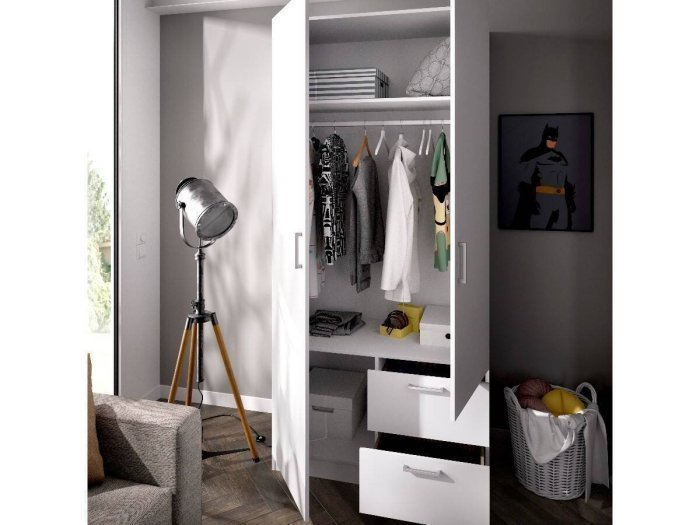 El armario de dos puertas y dos cajones menta es un elemento imprescindible en la habitación de cualquier niñ@ o adolescente.