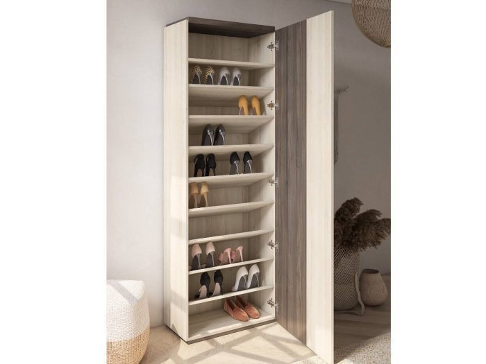 Armario de 1 puerta de lineas rectas con capacidad aproximada para 24 pares de zapatos. Es ideal para mantener los zapatos ordenados y protegidos del polvo y la humedad. Además ayuda a mantener el espacio ordenado y libre de desorden.