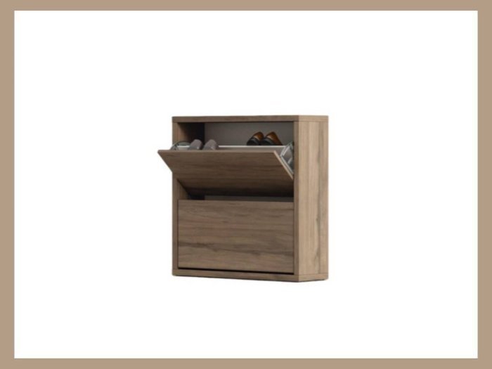 Zapatero de lineas rectas regruesadas, gracias a la estructura de 3 cm, que le da un aire de gran solidez.
