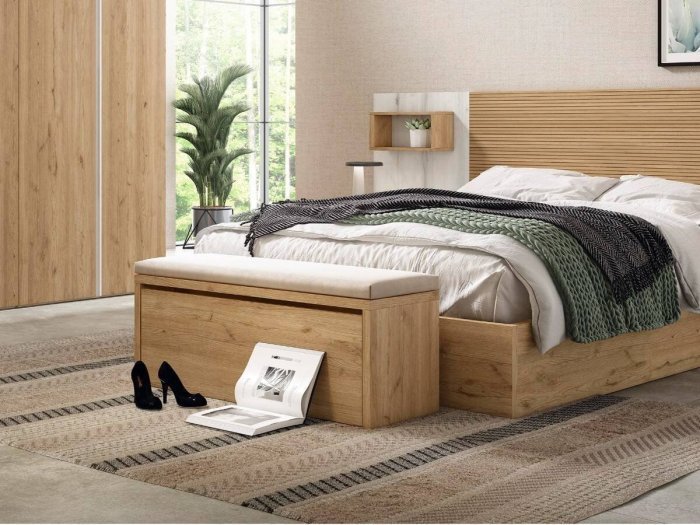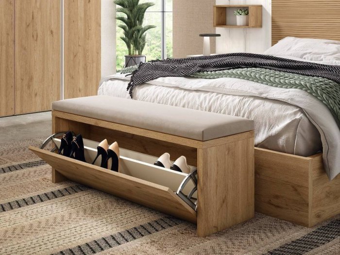 Si quieres tener organizados todos tus zapatos, ya puedes hacerte con esta práctica banqueta tapizada. Podrás colocarla a los pies de la cama o en cualquier rincón de la habitación, dándole un toque chic a la estancia.