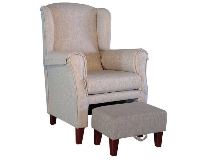 Se complementa con un pouff auxiliar, elemento ideal como punto de apoyo para los pies, que se esconde en la propia butaca cuando no se hace uso.