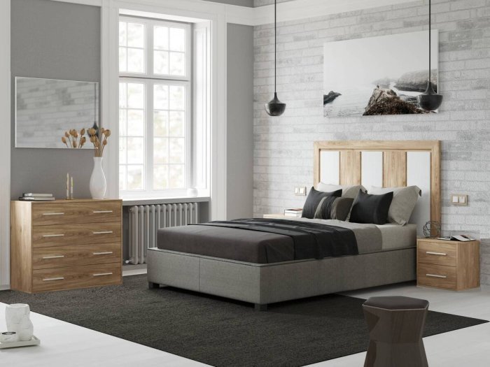 Escoge el color de cabezal que más te guste: Roble veta combinado blanco o Blanco veta con plata.