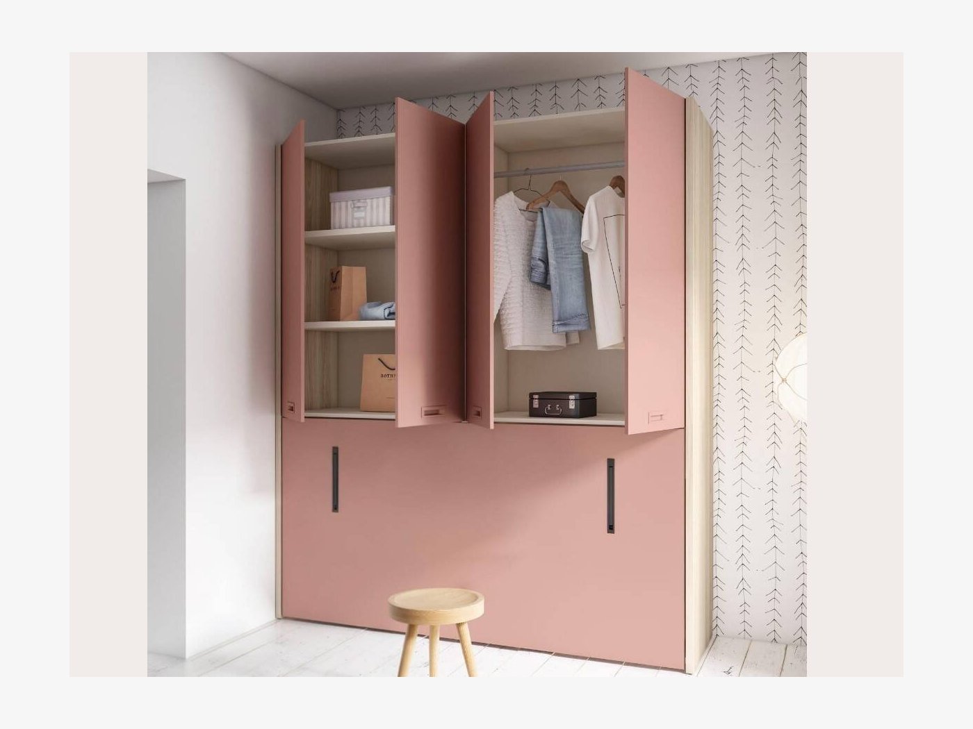 Una cama abatible horizontal con armarios es una opción perfecta para maximizar el espacio en una habitación pequeña. Estas camas son ideales para dormitorios compartidos, habitaciones de invitados o cualquier espacio donde se requiera una solución compacta y funcional.