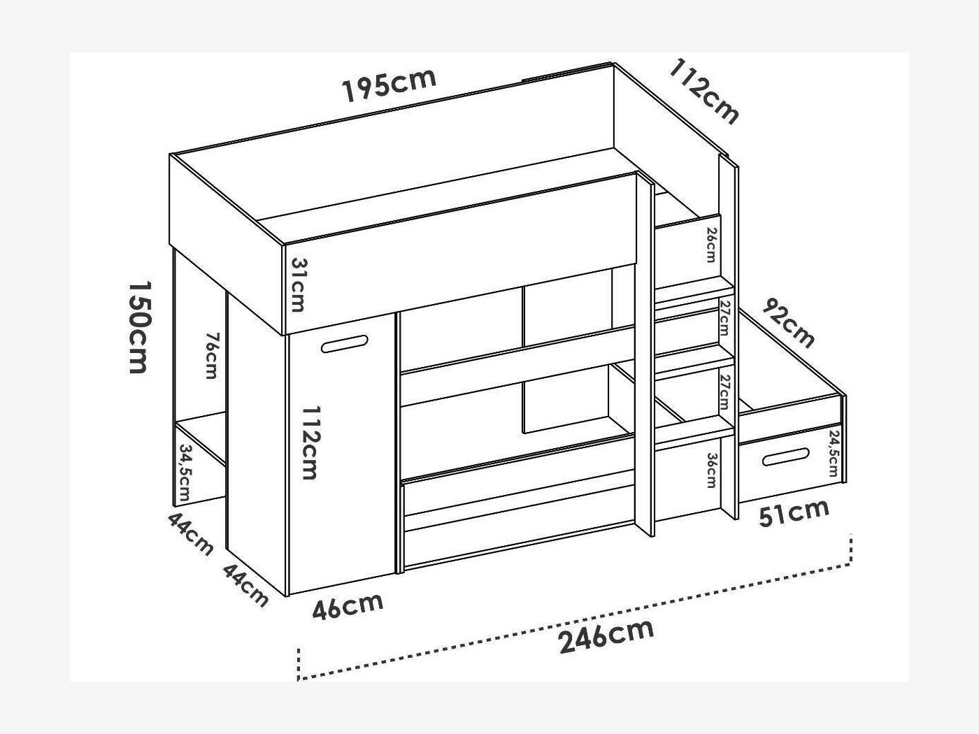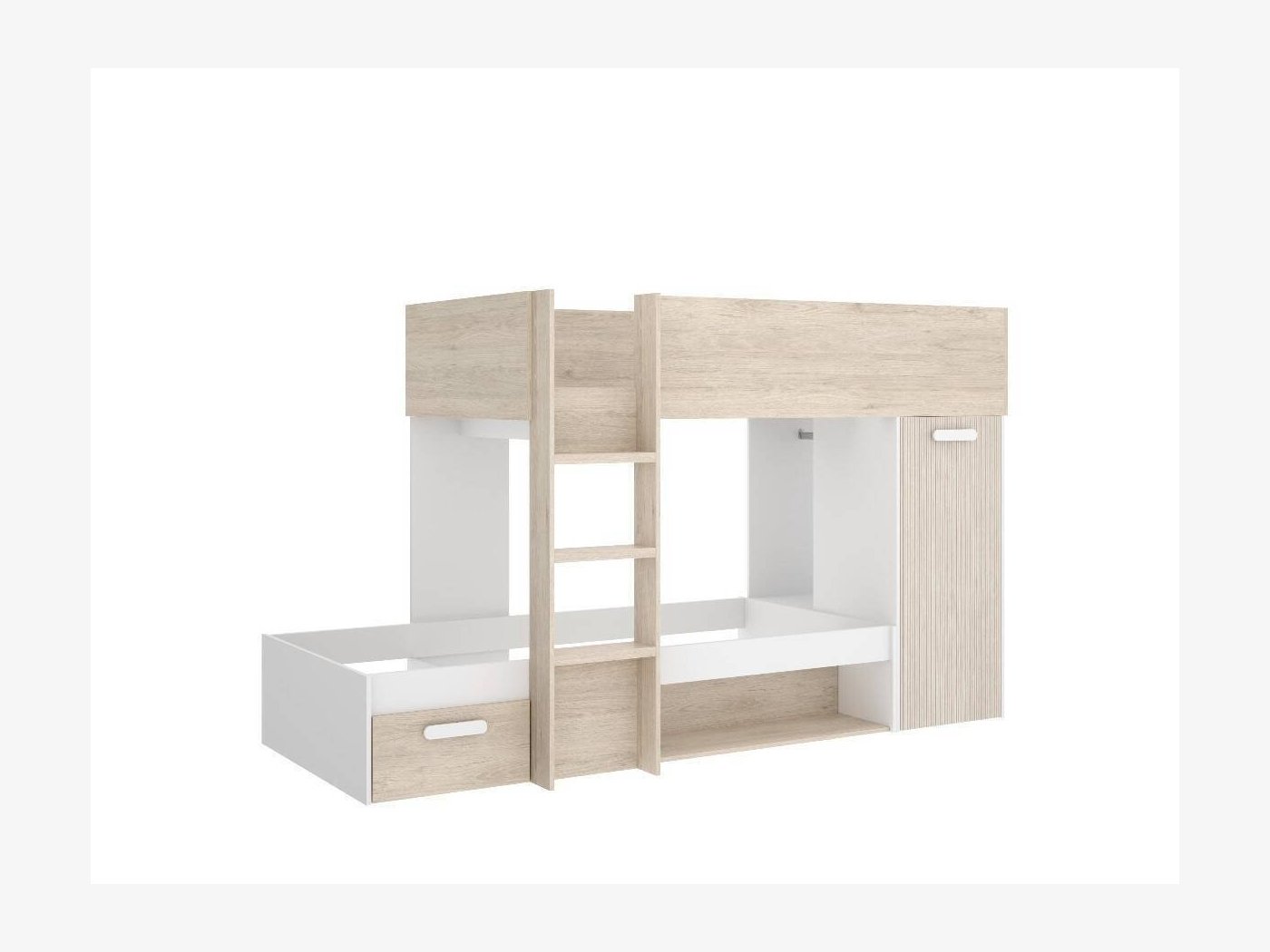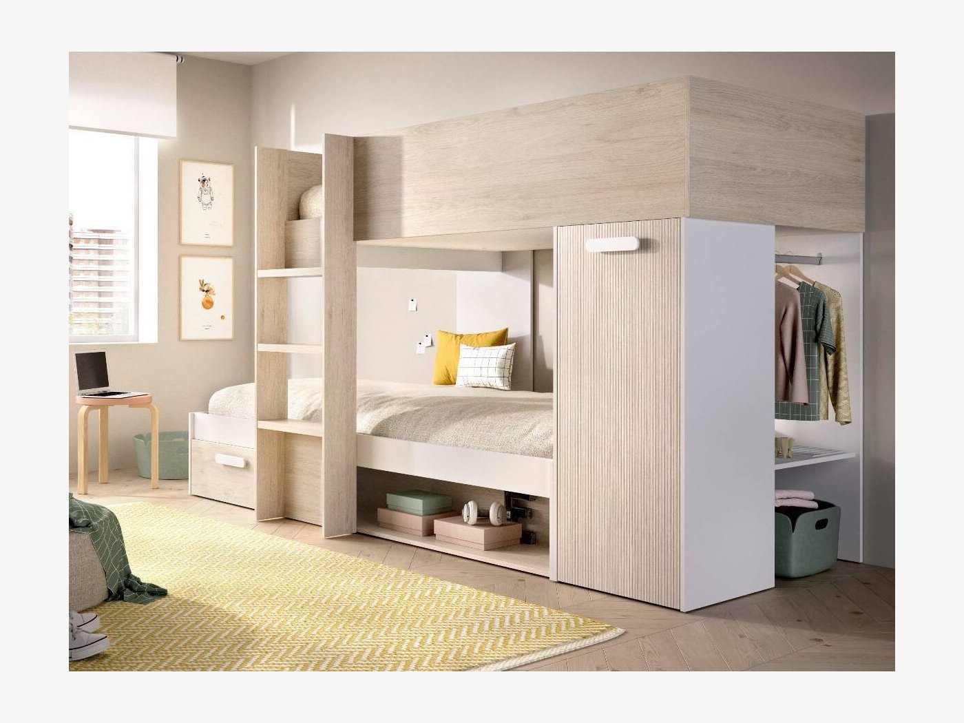 La cama tren con cajones es la solución perfecta para habitaciones con espacio limitado, ya que en tan solo 2.45m podemos tener 2 camas con espacio de almacenamiento.