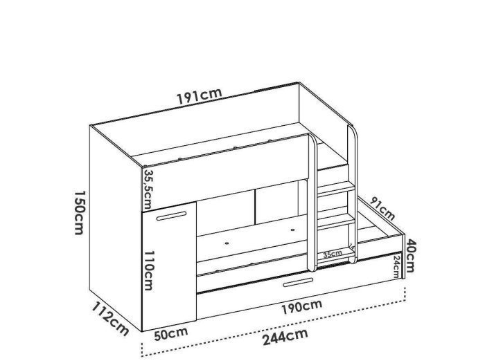 - Cama superior no indicada para niños menores de 6 años