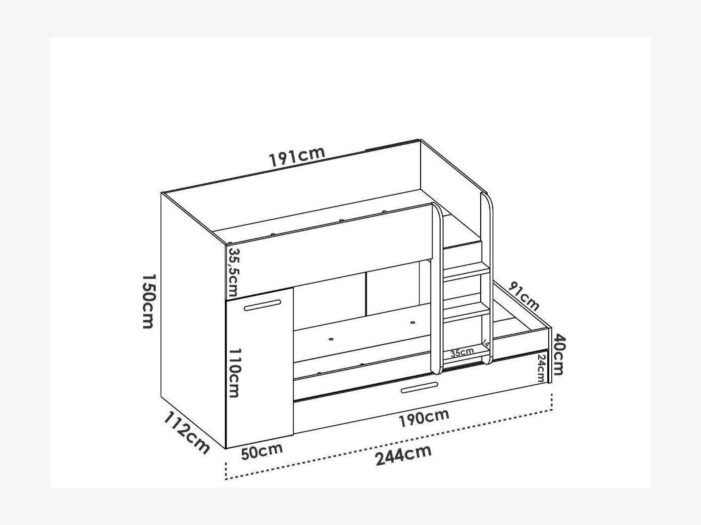 - Cama inferior precisan somier 90x190 cm
