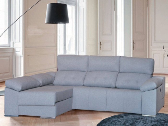 Armazón en madera de pino macizo. Bastidor con mecanismos de relax motorizados. Relleno de los asientos en goma espuma de 30 Kg suave. Respaldos y brazos fibra hueca siliconada. Patas metálicas en acabado cromado.