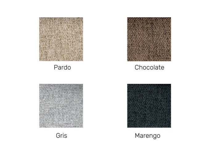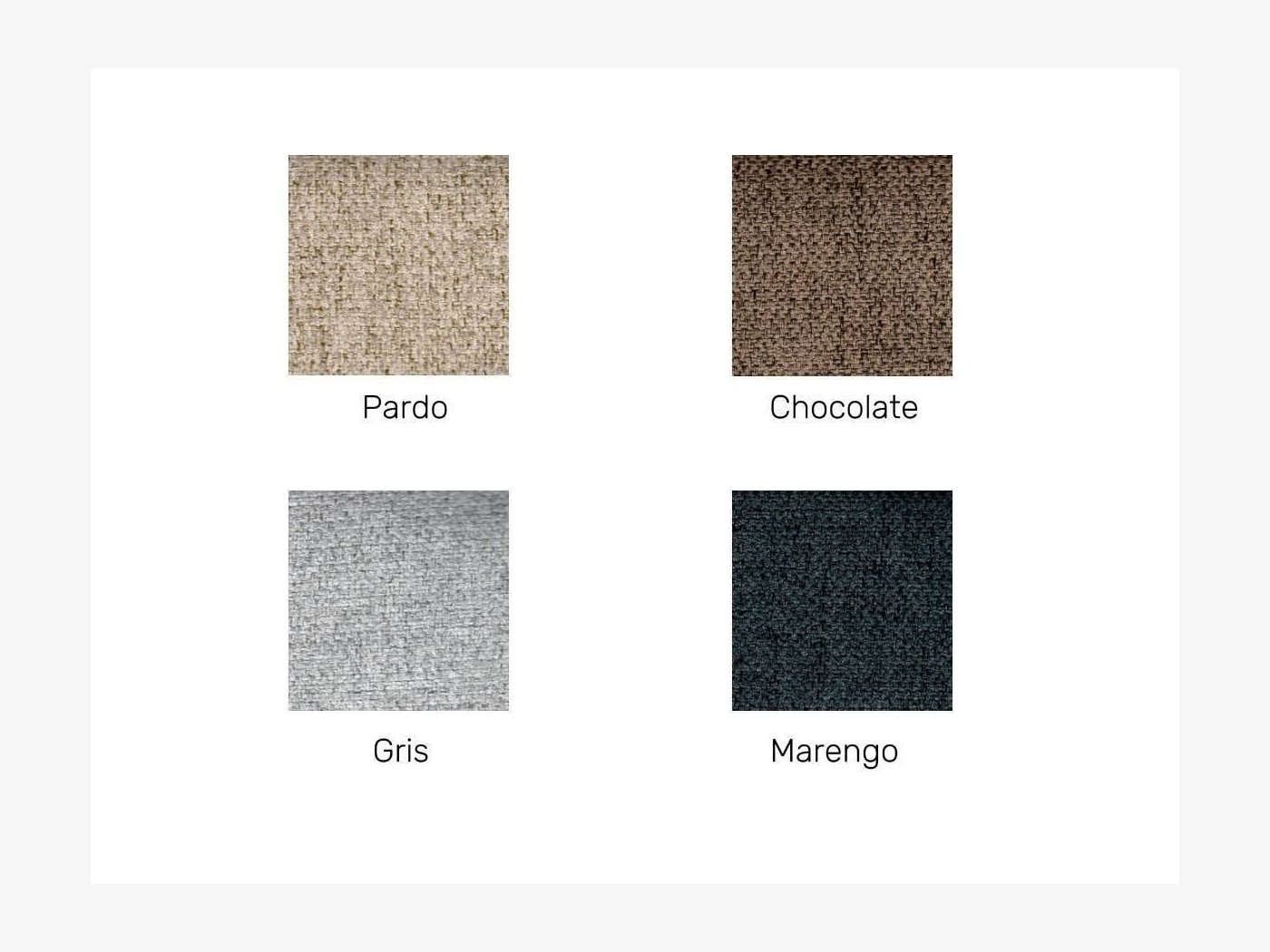 Tapizado en tela tipo chenilla de tacto suave. Tratamiento Acualine antimanchas. Asientos y respaldos desenfundables.