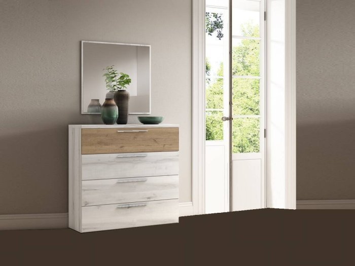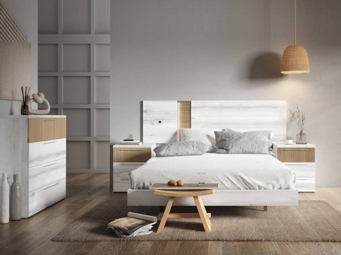 El diseño del dormitorio Fast se basa en la combinación de rectángulos de distinto tamaño y color, pudiendo personalizar el estilo del mueble.