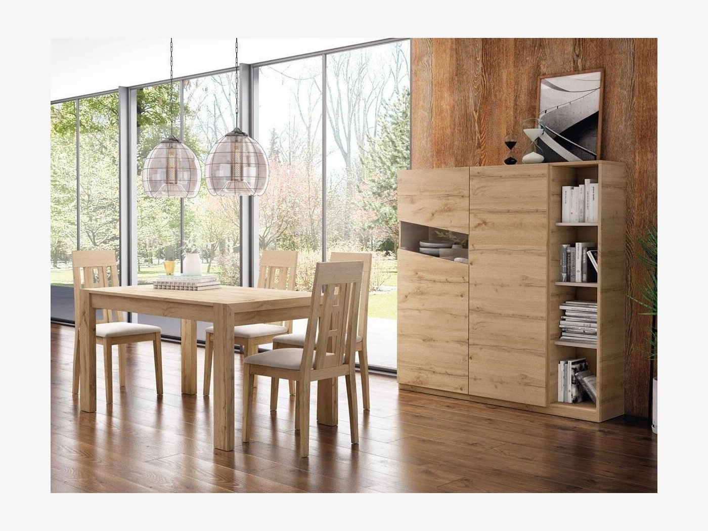 Para el pack los colores disponibles de madera son Blanco veta, Roble y Roble veta. Los tapizados de silla Beige y chocolate. Para cualquier otra combinación de colores disponible en mesa Gato y silla Triángulo.