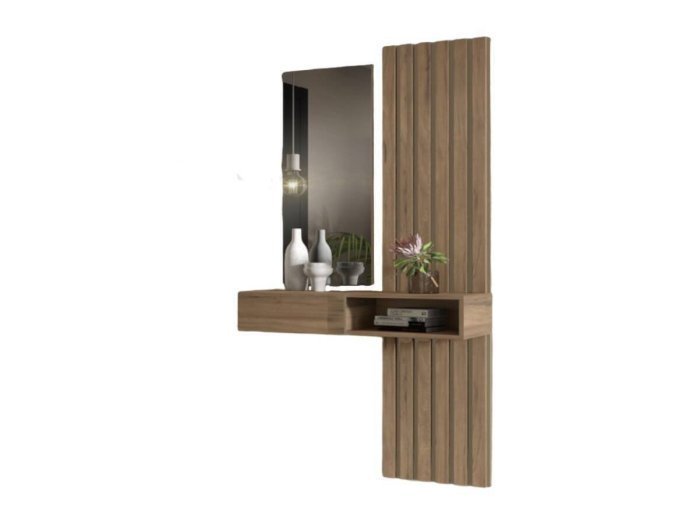 Se complementa con un espejo rectangular de 102x35 cm y ddos paneles de 112x38.4 cm y 68x38.4 cm