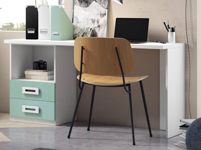 Cajonera con cajones de guias metálicas. Ambos deben ser del mismo tono.Tiradores del mismo color que el color base