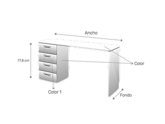 Por defecto se fabrica con los 3 cajones y tirador en color 1 excepto para natural, roble y roble veta que el tirador es blanco. En caso de querer cada cajón de un color diferente o tirador en diferente color, indicar en Especificaciones.