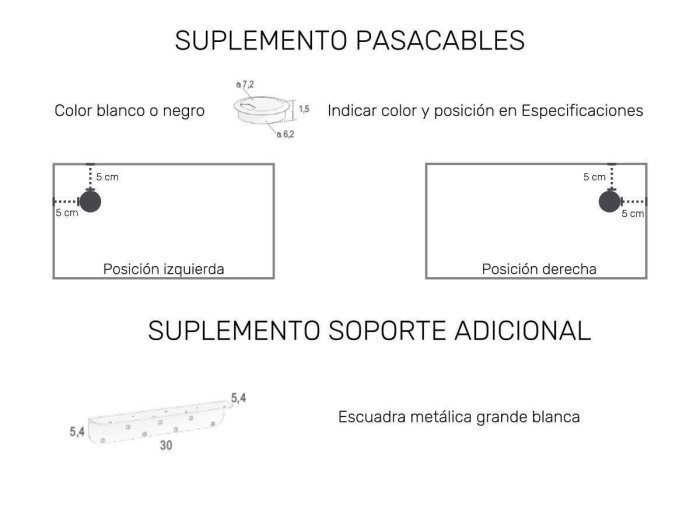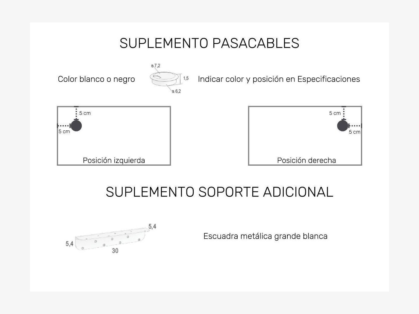 También puedes añadir suplementos como un agujero pasacables de 6.2 cm de diámetro, para mejorar la organización de los cables.