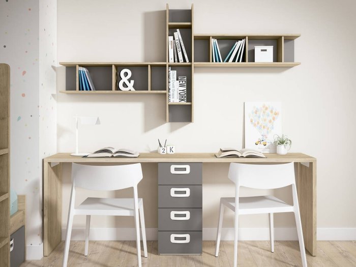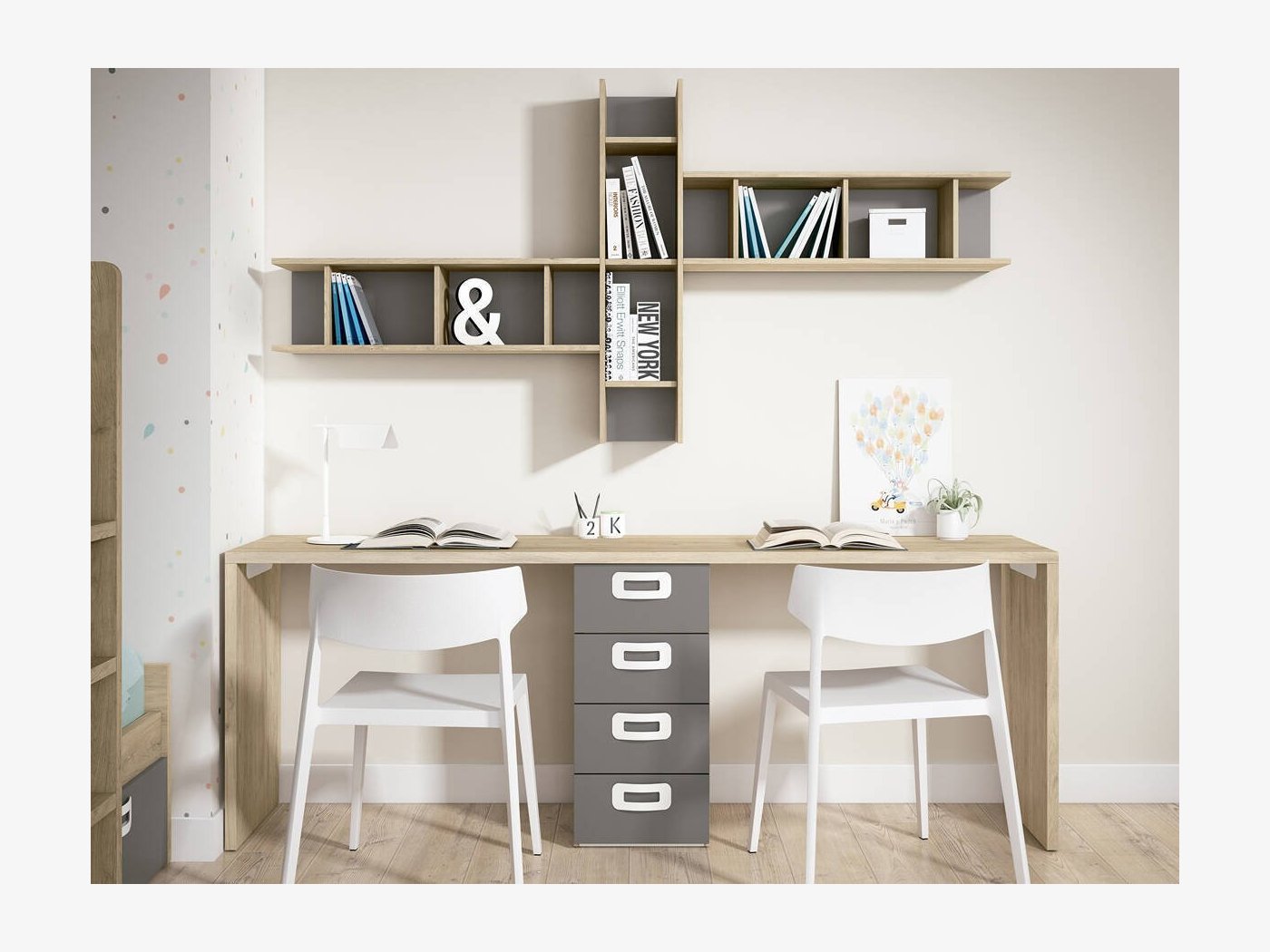 Este tipo de escritorios proporcionan dos estaciones de trabajo separadas, lo que lo hace ideal para hermanos, compañeros de cuarto, o un espacio adicional para proyectos personales