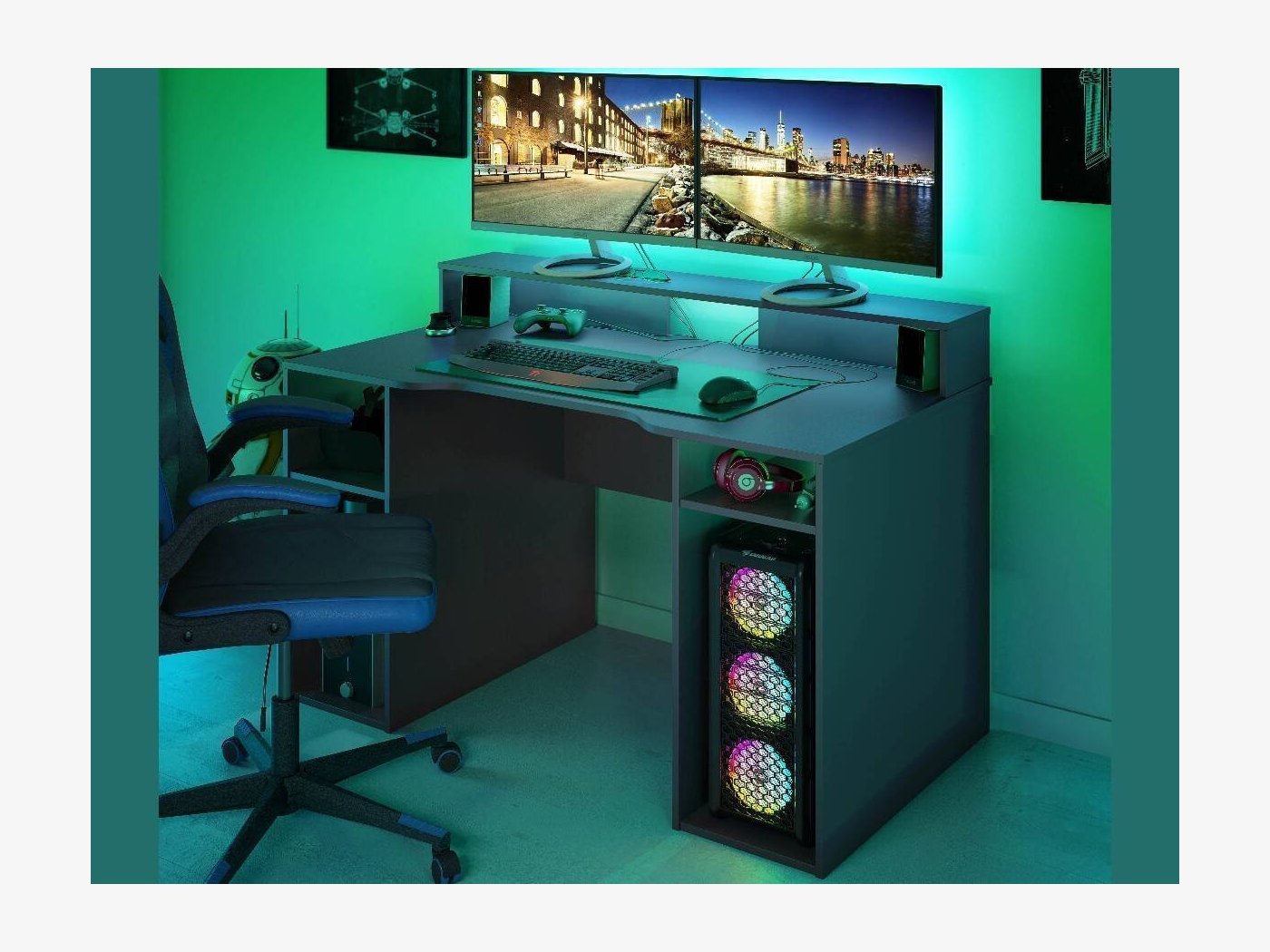 Si estás buscando una mesa gamer con la que completar tu zona de juego, este mueble es ideal para ello, ya que ofrece una superficie de 136 cm de ancho y dispone de varios compartimentos en los que podrás distribuir tu equipo. El altillo te permitirá añadir hasta dos monitores (dependiendo del tamaño de cada uno de ellos). Además, dispone de una superficie para colocar el teclado, el ratón e incluso un micrófono.¡No te pierdas la mesa gaming!