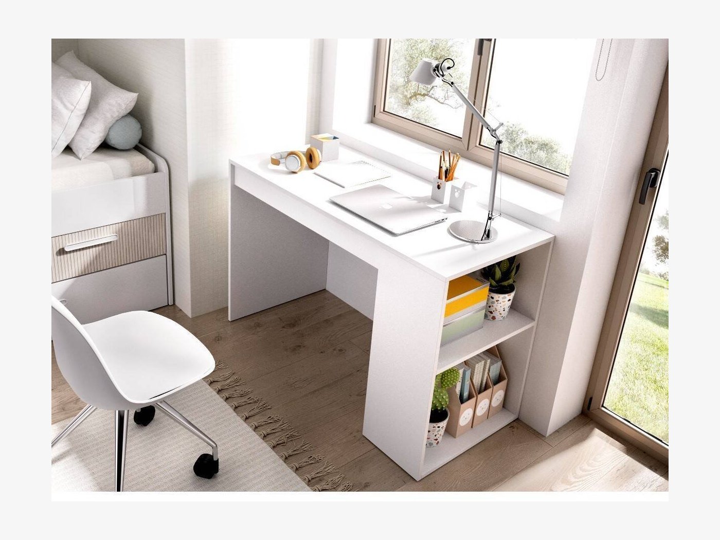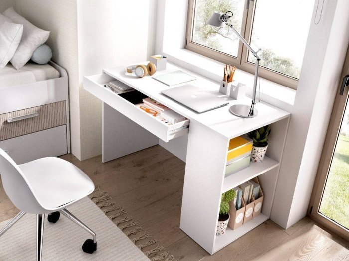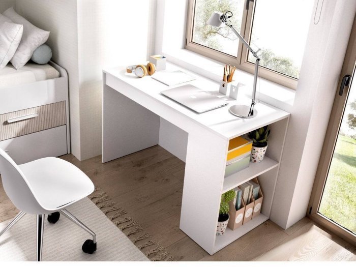 Esta mesa de estudio está pensada para maximizar el espacio en habitaciones pequeñas. Su diseño permite tener una gran zona de trabajo, así como un espacio para almacenar todo lo que necesiten.