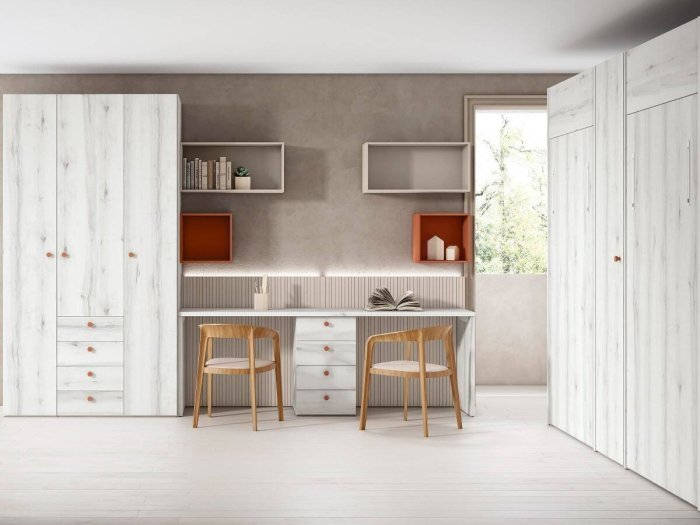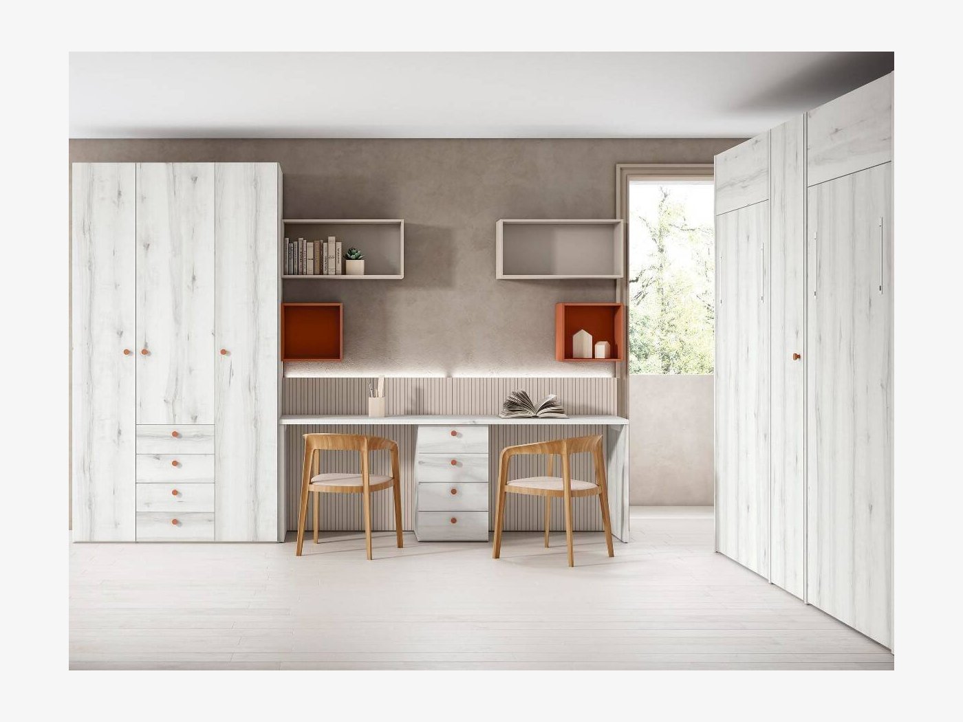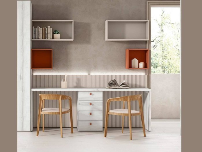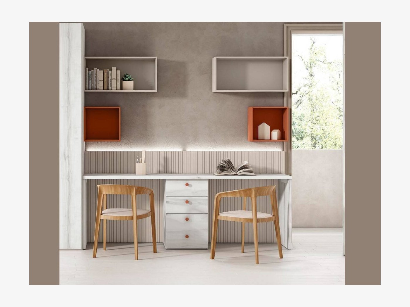 Este tipo de escritorios proporcionan dos estaciones de trabajo separadas, lo que lo hace ideal para hermanos, compañeros de cuarto, o un espacio adicional para proyectos personales