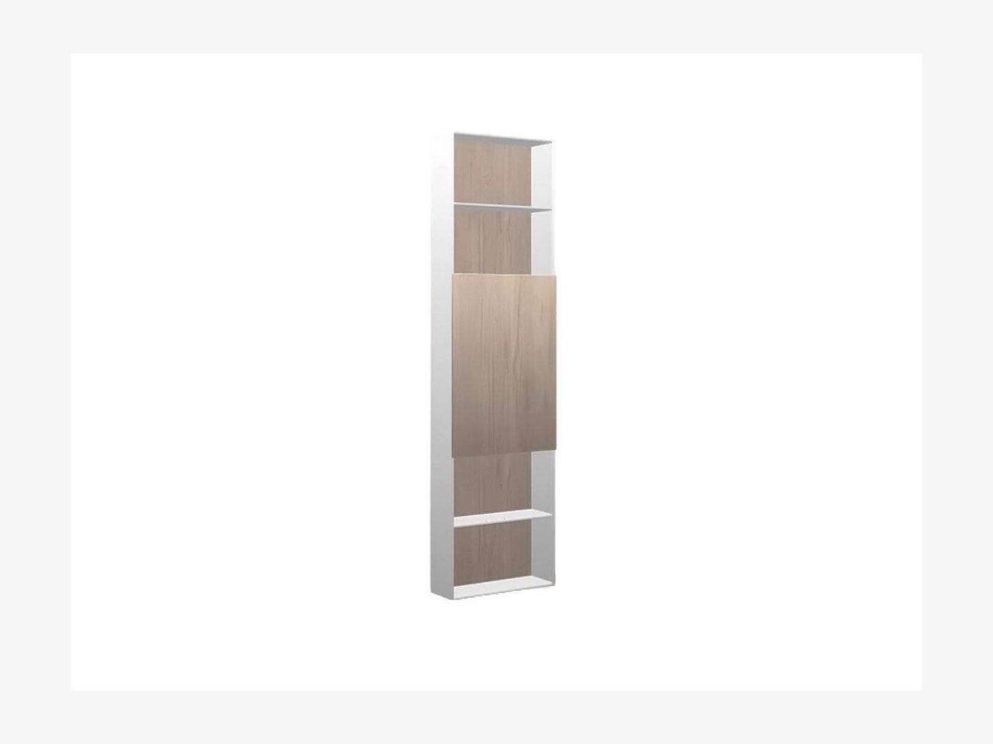 Incorpora una puerta en la zona central, para poder almacenar objetos que no sean visibles y consiguiendo que sea un mueble también decorativo en la estancia.
