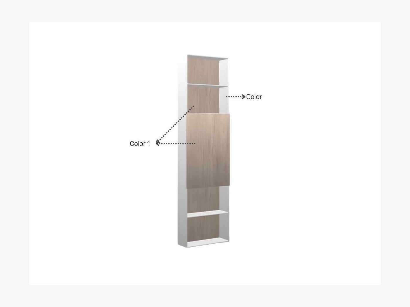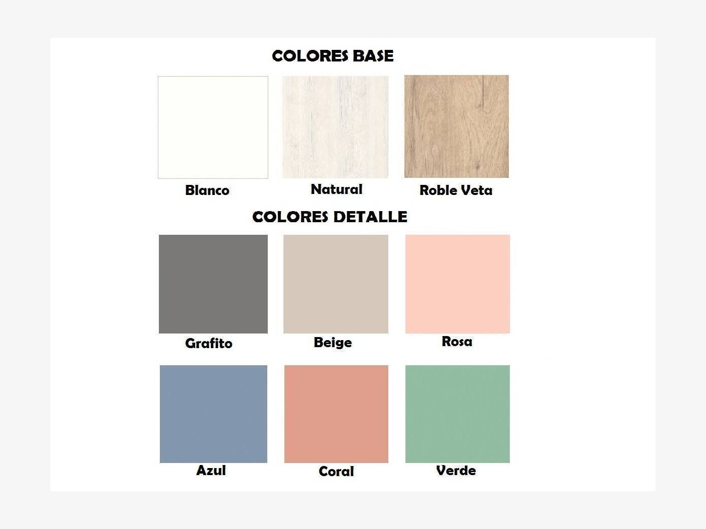 Escoge la combinación de colores que mejor se adapte a tu decoración. Importante: el estante central (tercero) irá en el mismo color que la trasera