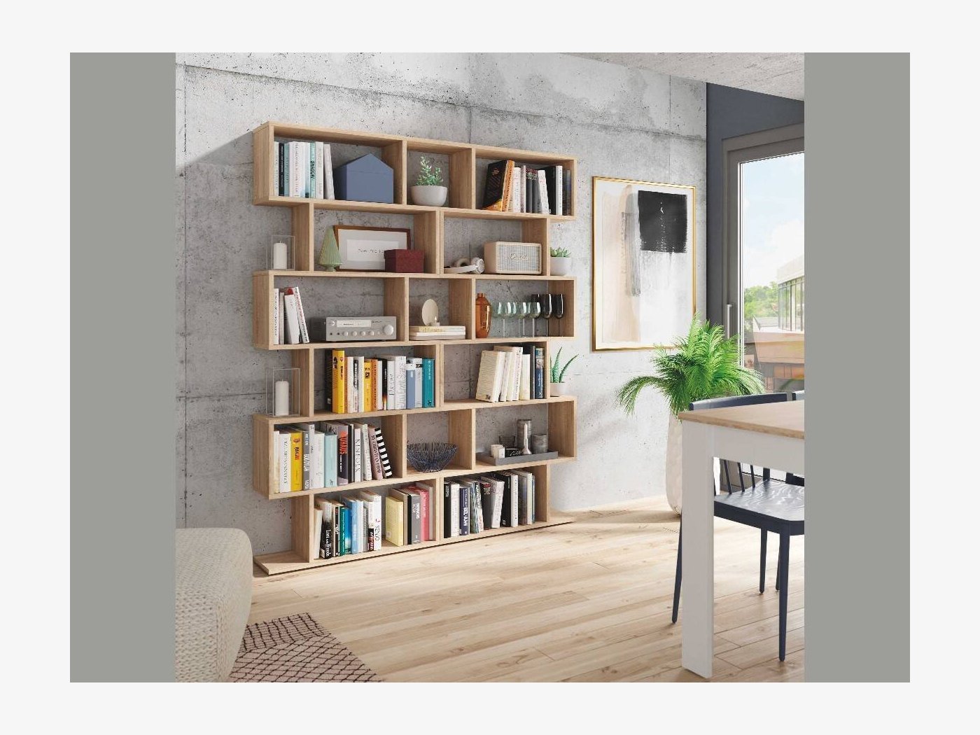 La estanteria Loft es un modelo de forma asimétrica que permite crear infinidad de combinaciones, como la forma cuadrada de la fotografia