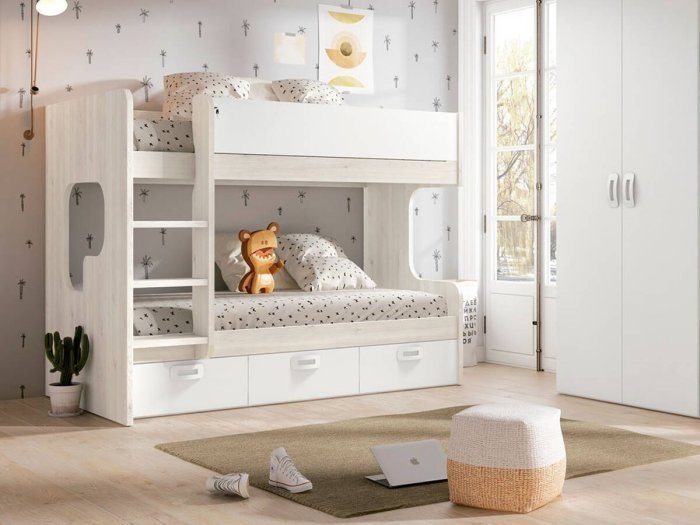 Cama inferior precisa somier y colchón de 90x190 cm.