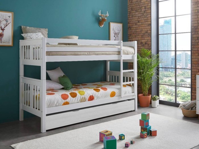 La litera juvenil Warrior es un mueble ideal para aprovechar el espacio en habitaciones pequeñas o compartidas. Se puede convertir en 2 camas, en caso necesario