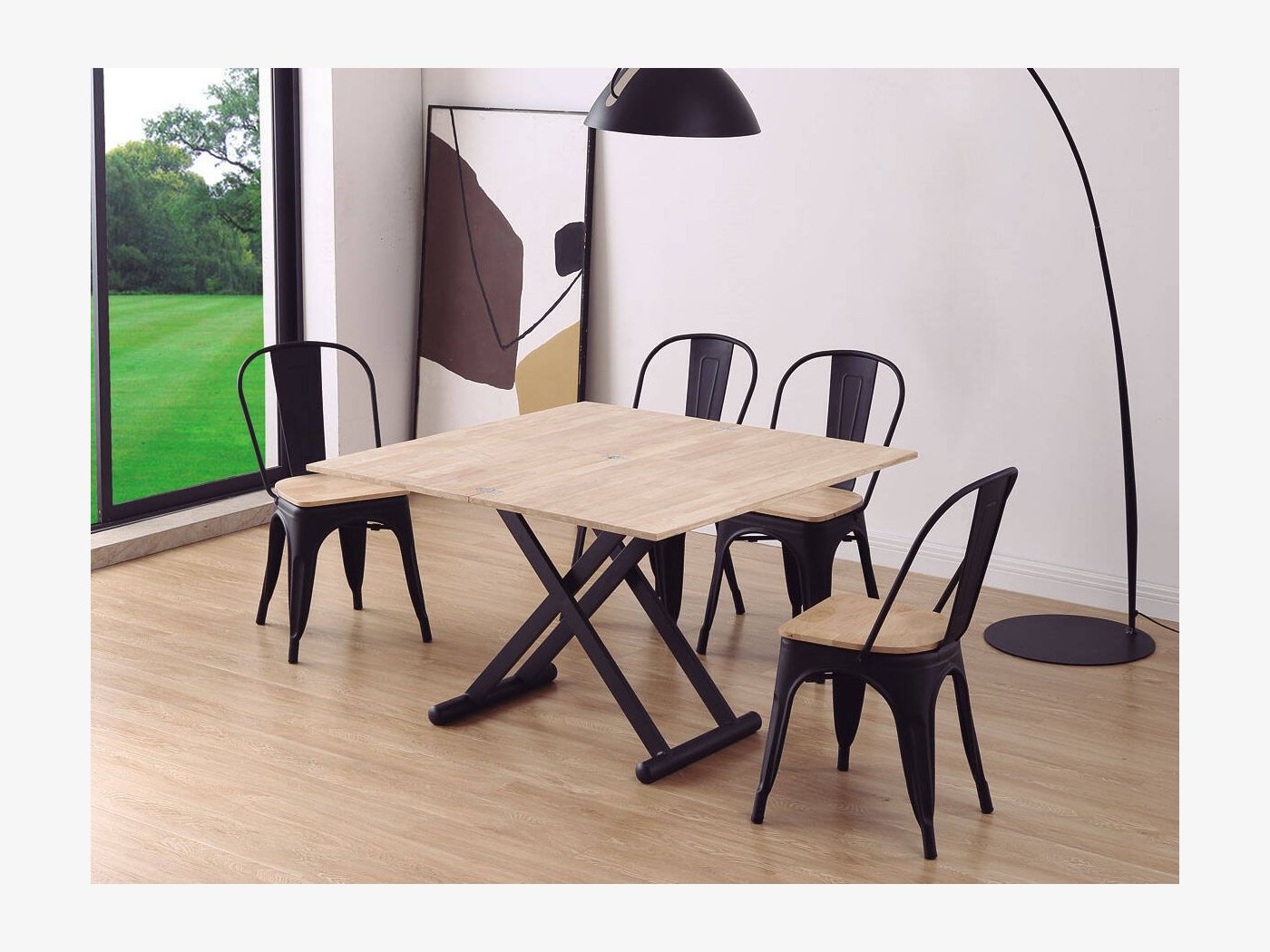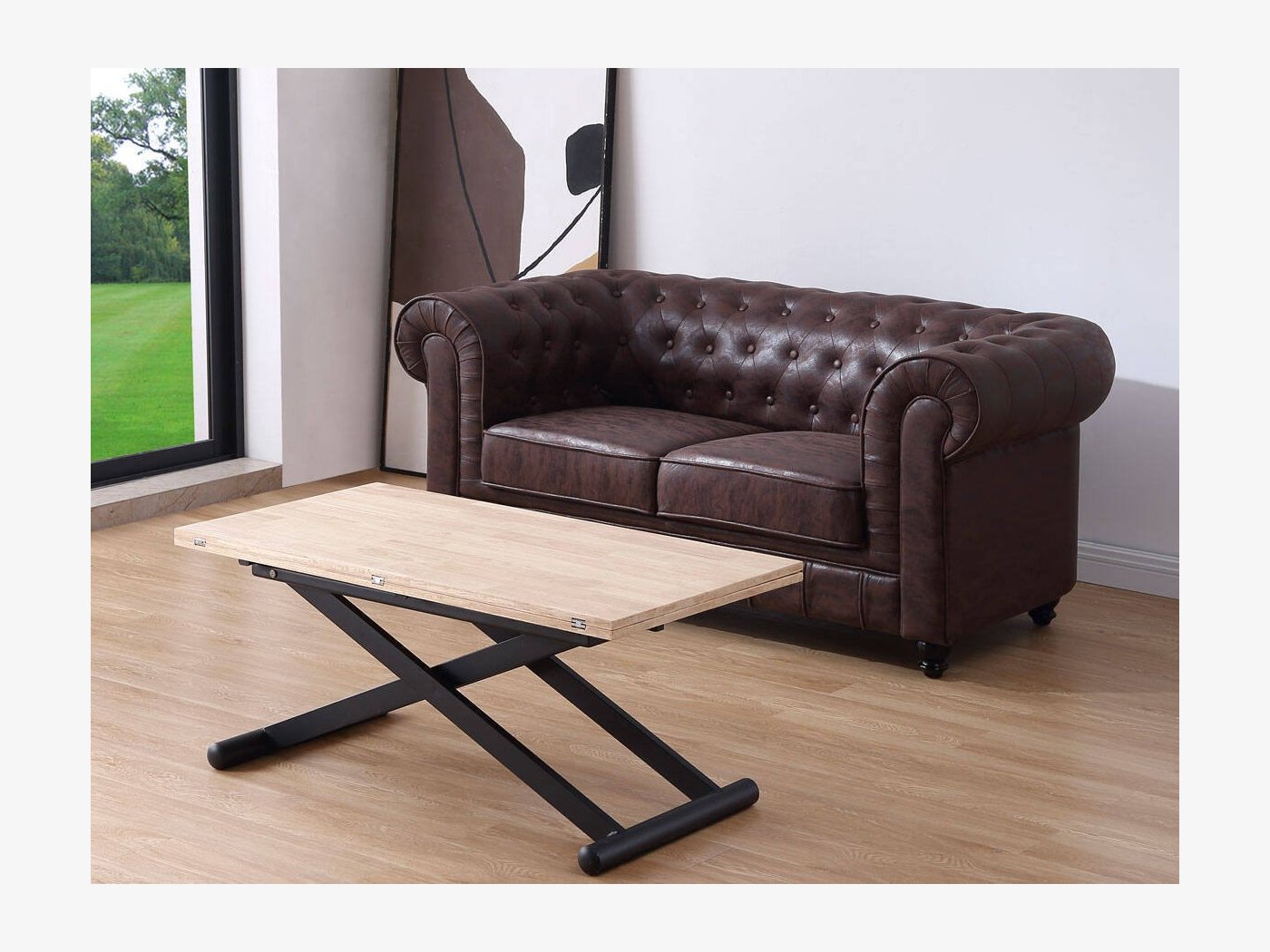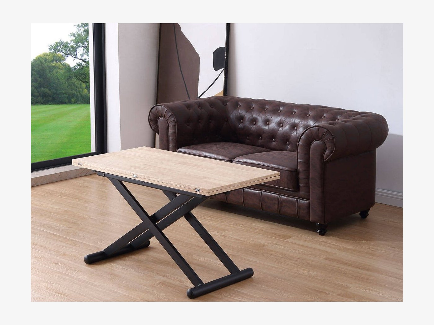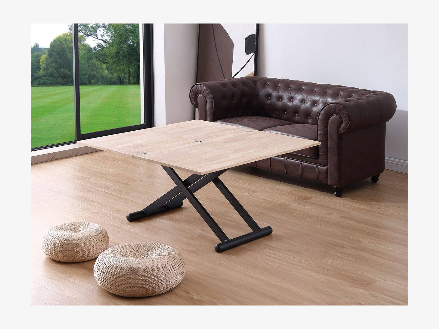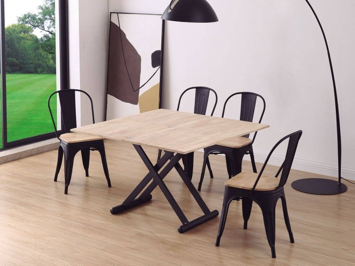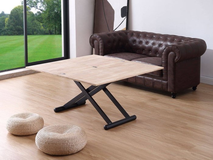 Mesa de centro elevable mediante cilindro de gas accionado por maneta hasta 76 cm.