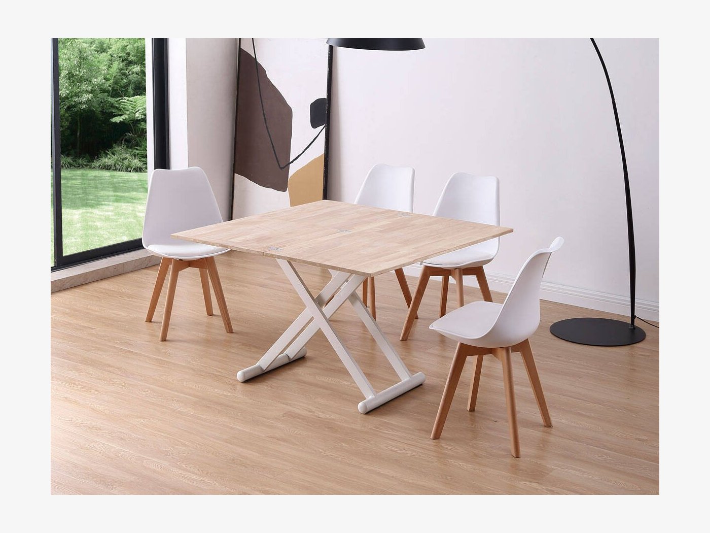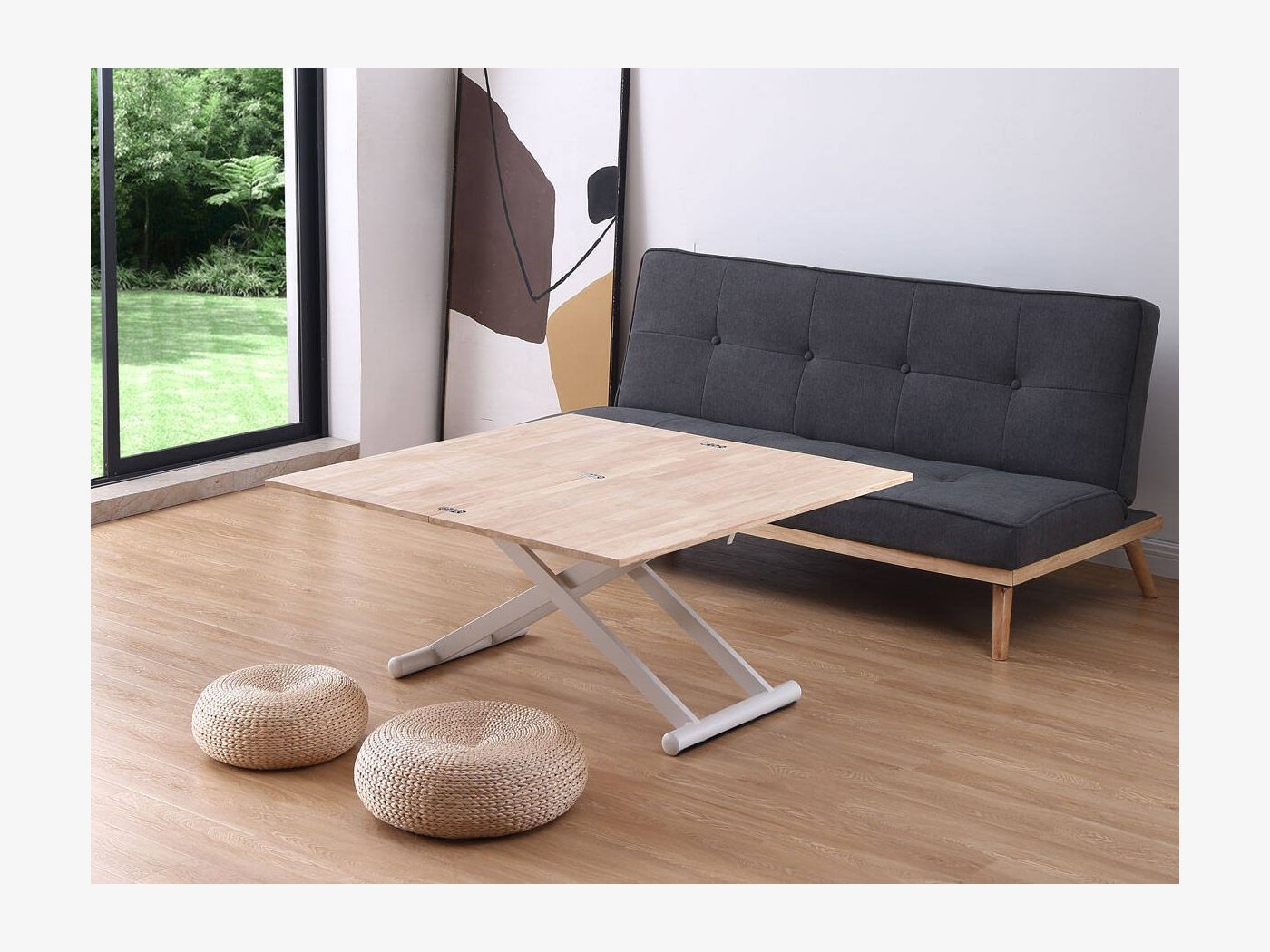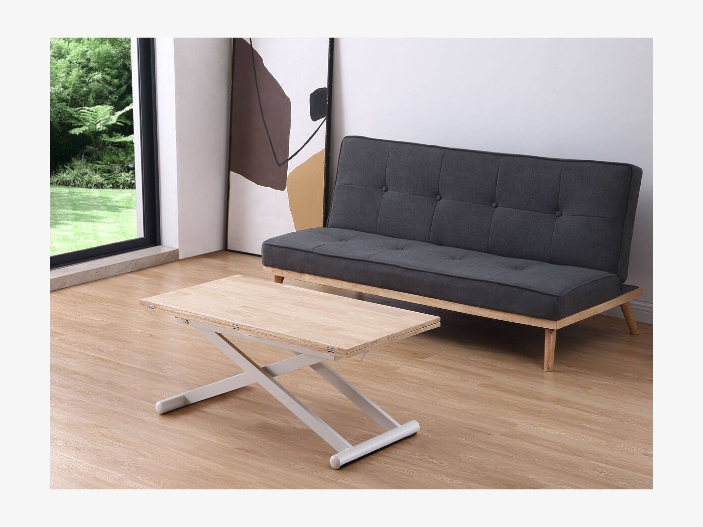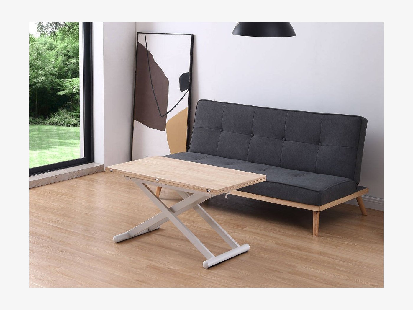 Mesa de centro elevable mediante cilindro de gas accionado por maneta hasta 76 cm.