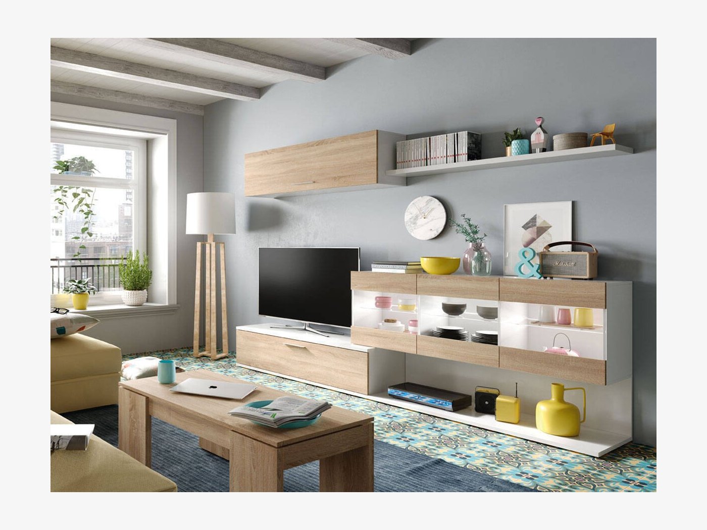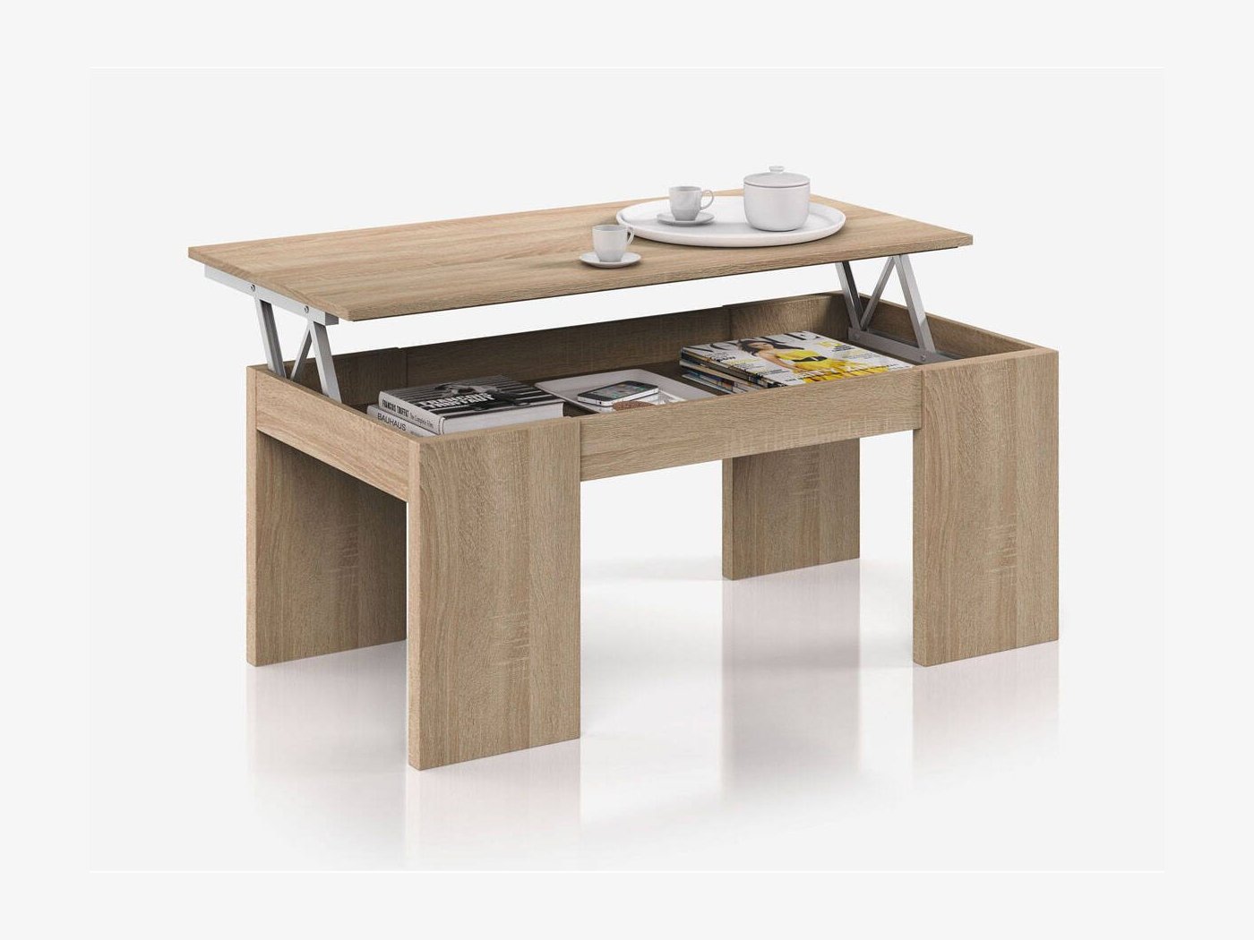 Mesa de centro elevable para el salón, disponible en color roble sierra.