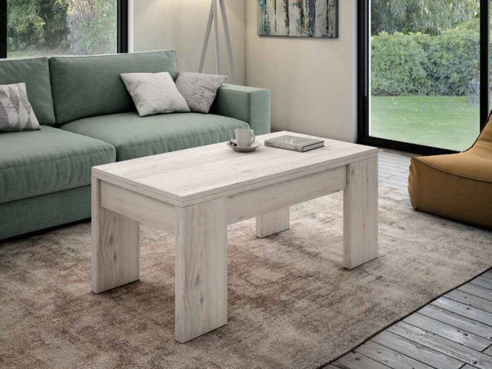 Mesa de centro elevable y convertible en mesa de comedor