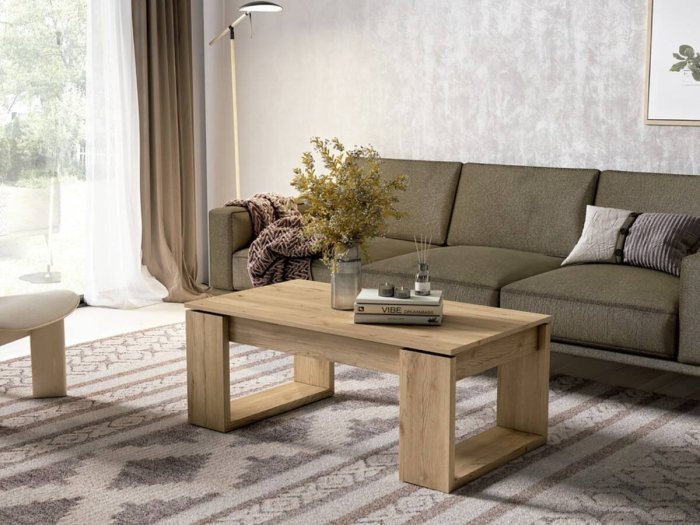 La mesa de centro elevable Hispania es una práctica mesa de centro para el salón-comedor cuya superficie se eleva, haciéndote más fácil comer, leer o trabajar desde el sofá.
