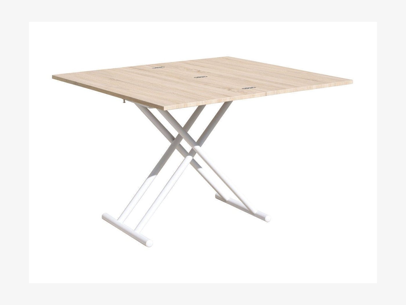 Tapa en color roble. Estructura metálica color blanco.
