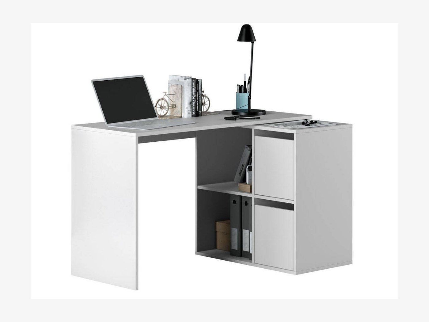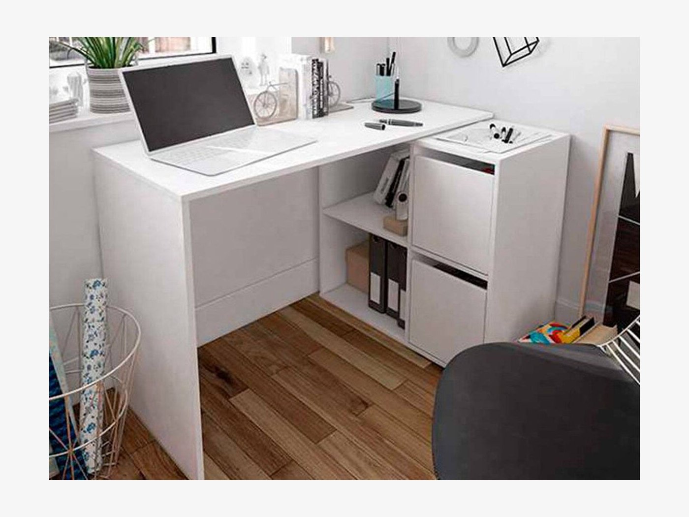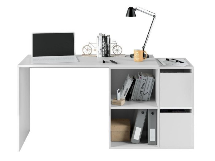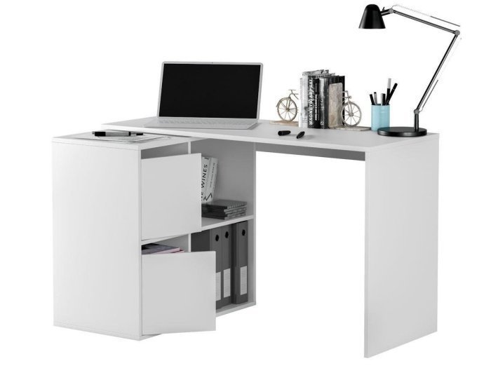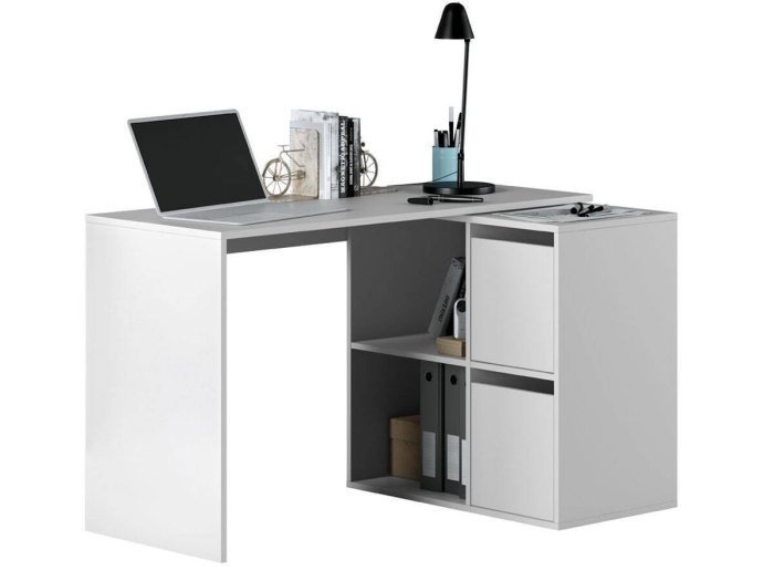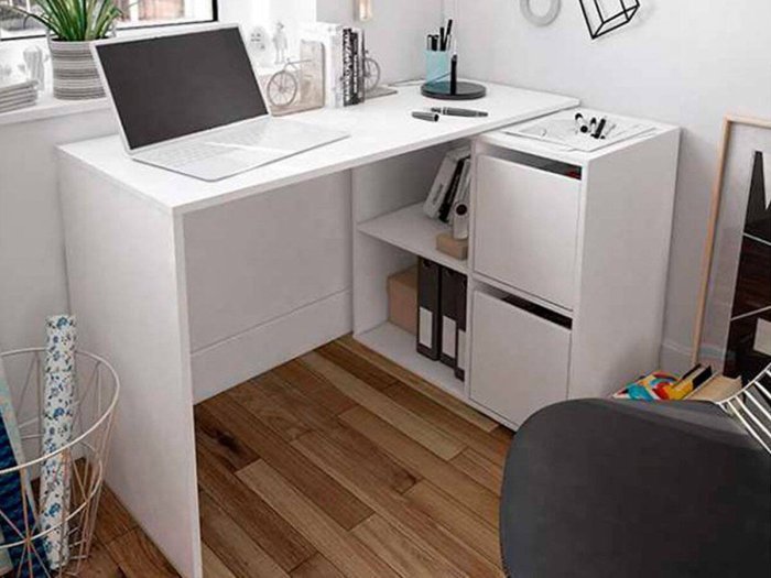 Formada por una mesa principal de 120 cm y una segunda mesa que puede colocarse ampliando la primera o formando ángulo recto. Escoge la posición que más te convenga.