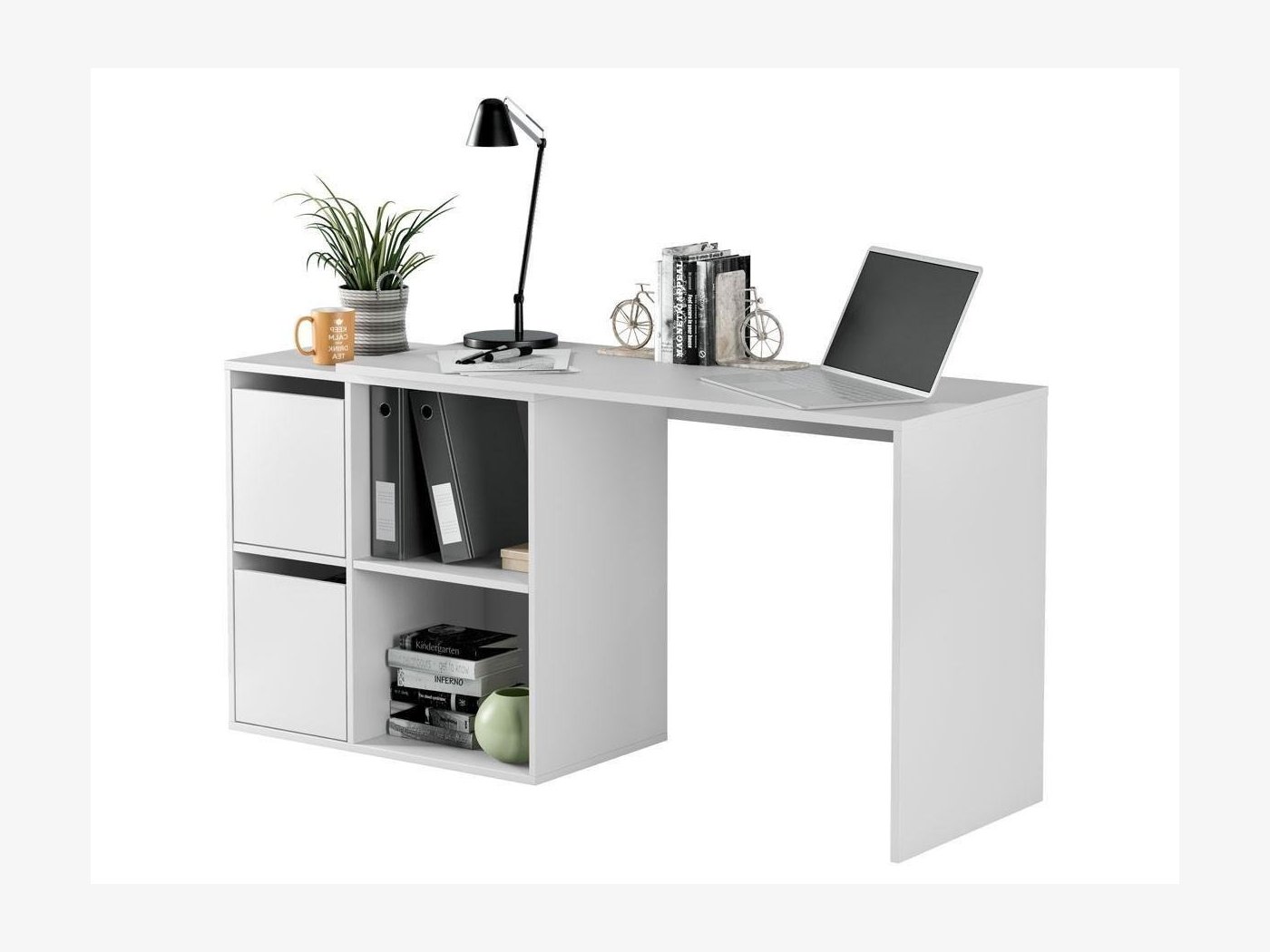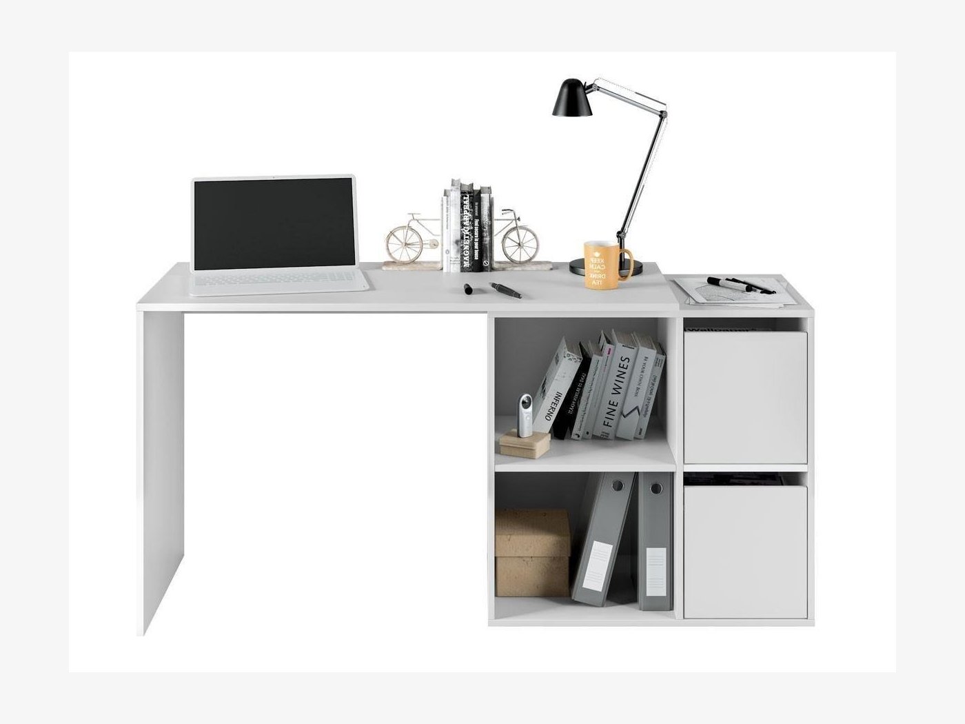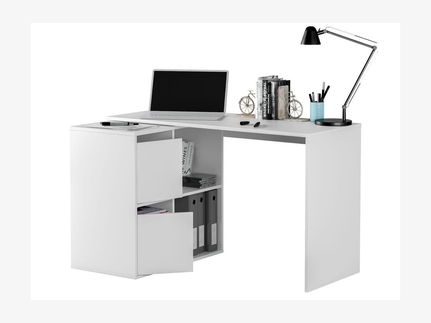 Formada por una mesa principal de 120 cm y una segunda mesa que puede colocarse ampliando la primera o formando ángulo recto. Escoge la posición que más te convenga.