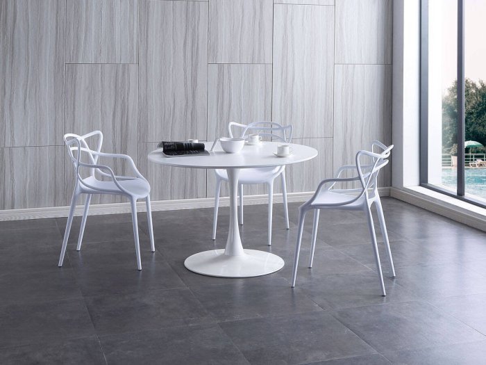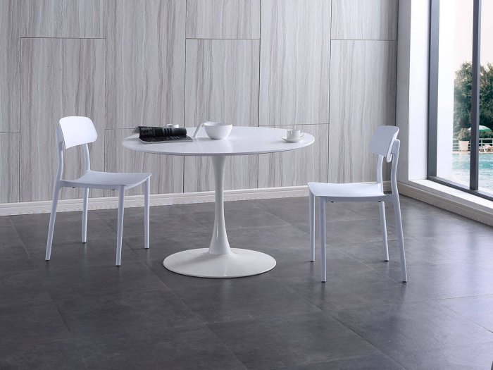 Como resultado se obtiene una mesa en alto brillo, con un estilo retro-futurista ideal para adaptarse a distintos estilos como el minimalista, moderno e incluso en un ambiente más pop.
