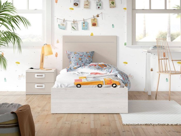 Tablero de melamina de 30 mm. combinado tablero de 16 mm. Interiores de montaje no visibles en color estandard, que puede no coincidir con el color escogido de cama.
